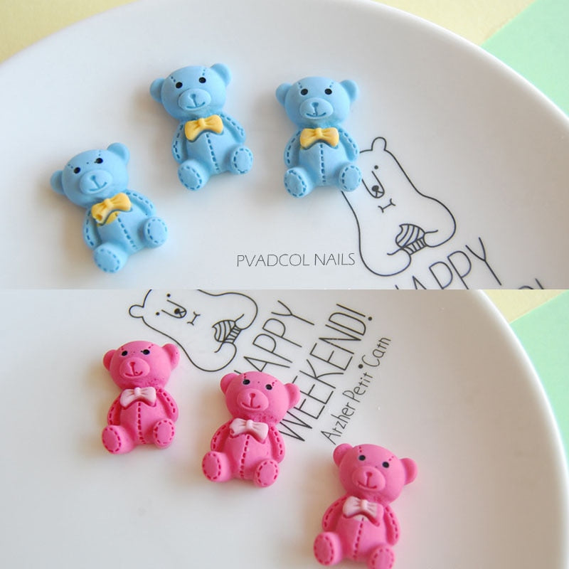 Kawaii Nail Art Cute Bear Resin 3D Nail Charms Glitter Rhinestones Decoration Manicure Accessories-Nail Inspo