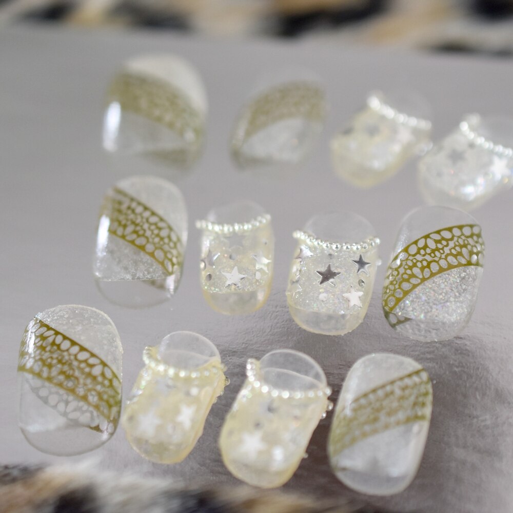 Looks cute on my nails. I had to adjust them according to my nail sizes. The glue fixed them tightly to the nail so far( the second day yet). I applied some top coat for extra shine.