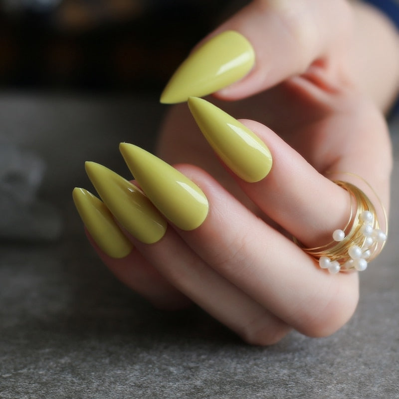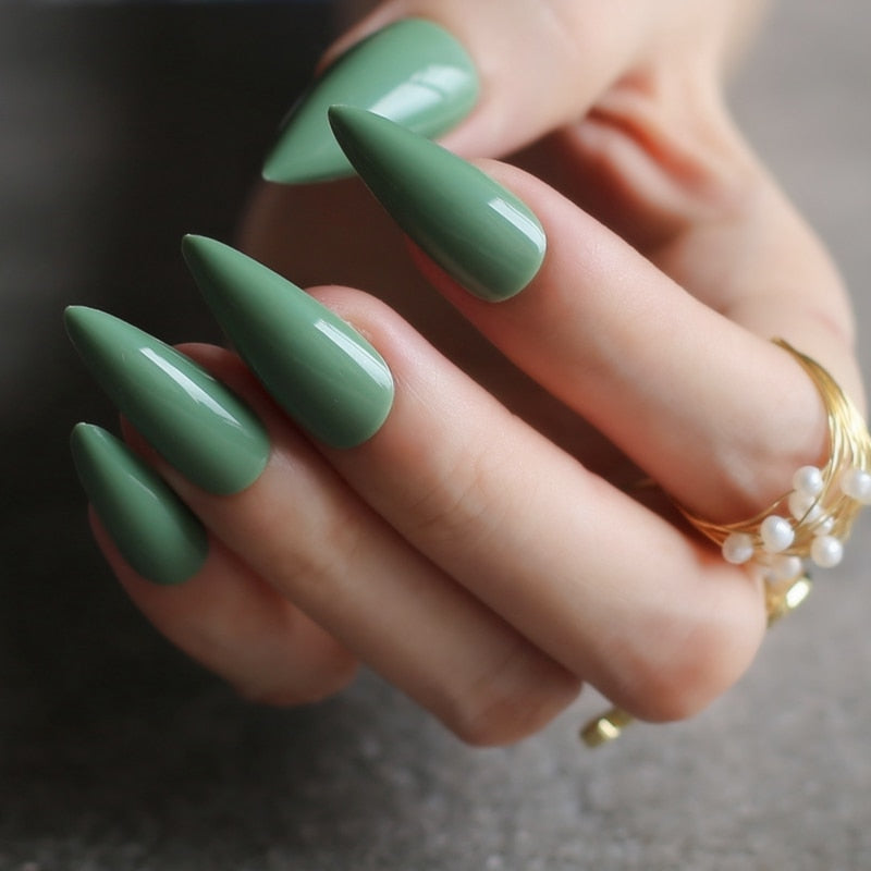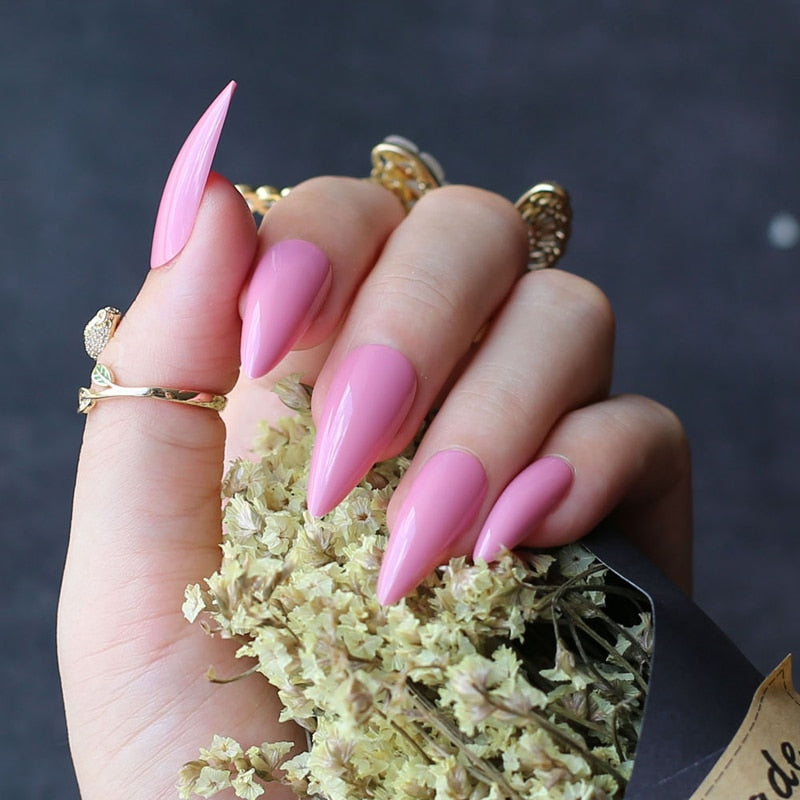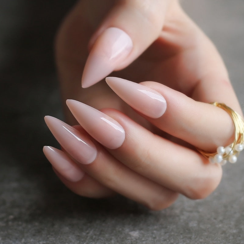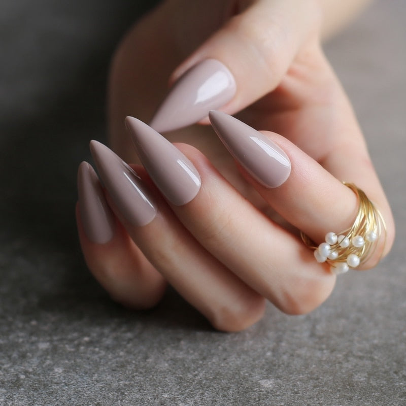 long shiny fake nails brick clour Stiletto glossy false nails Long almond salon art false nails nude Middle length-Nail Inspo