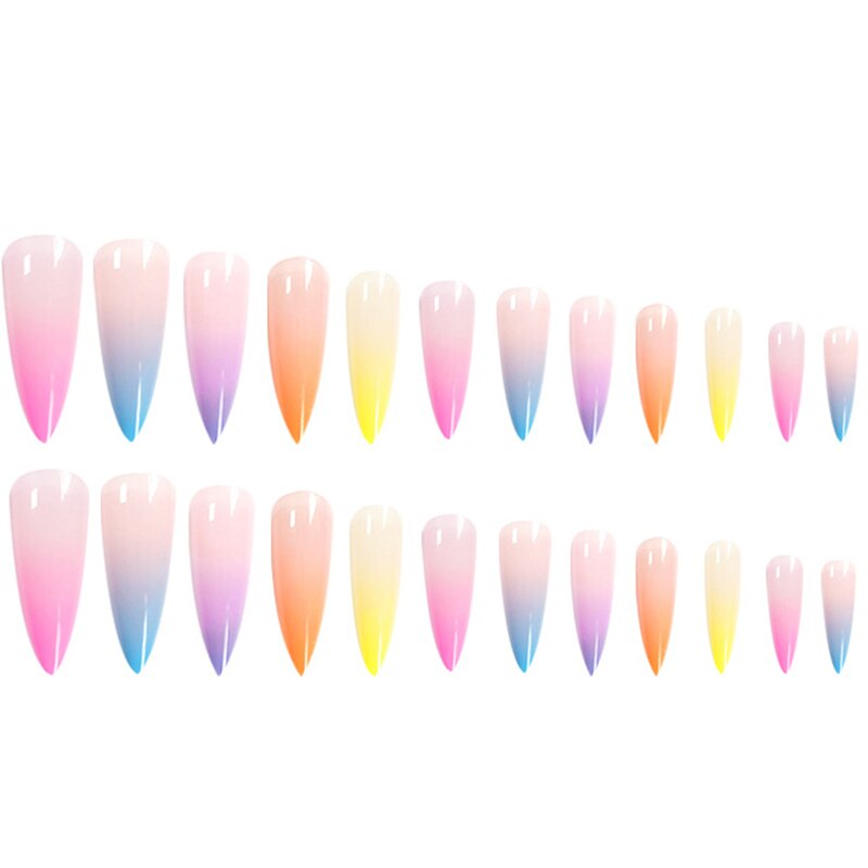 Long Stiletto Fake Nails Rainbow Color Full Cover False Nails with Sticker Nail Decoration Artificial Nail Art Tips Faux Ongles-Nail Inspo