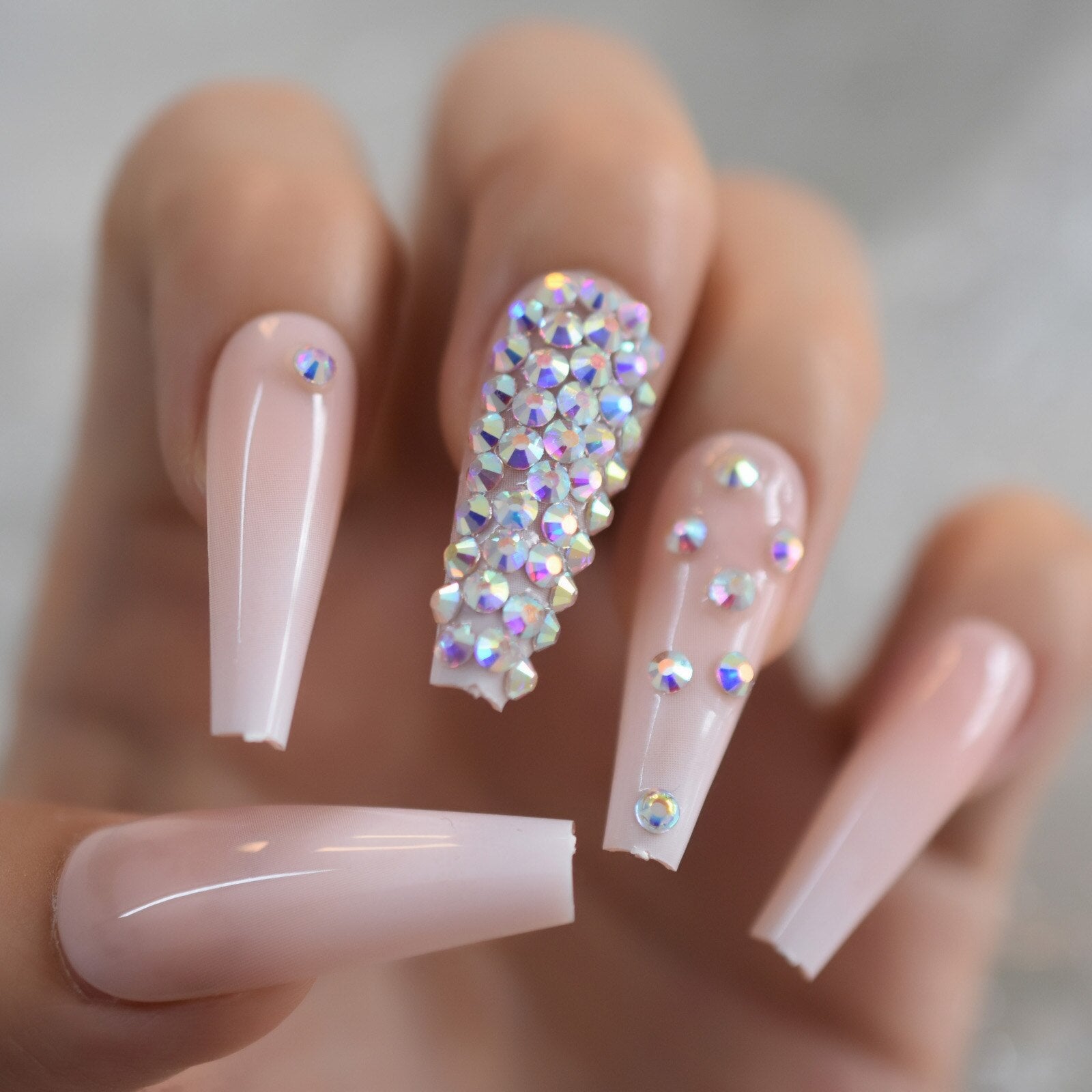 Luxury Fake Nails Designer Extra Long Ombre French Jewelry Pre-designed Nails Natural Stiletto AB Stones Decoration Tips-Nail Inspo