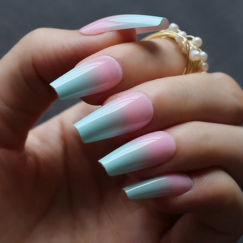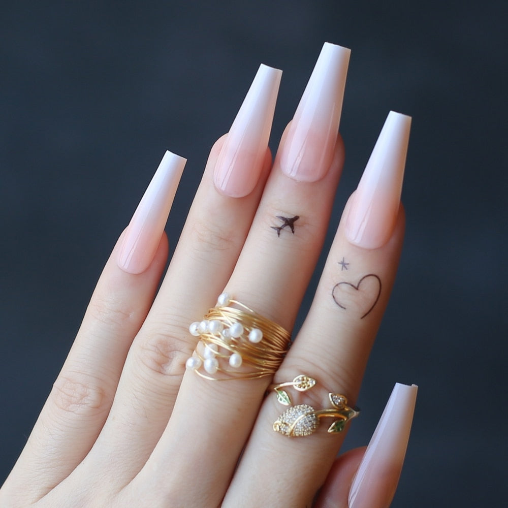 Luxury gel ombre Coffin Acrylic nails nude salon 24pcs fake nails ballet UV glossy reuse trapezoid Baby Boomer Gradient yellow-Nail Inspo