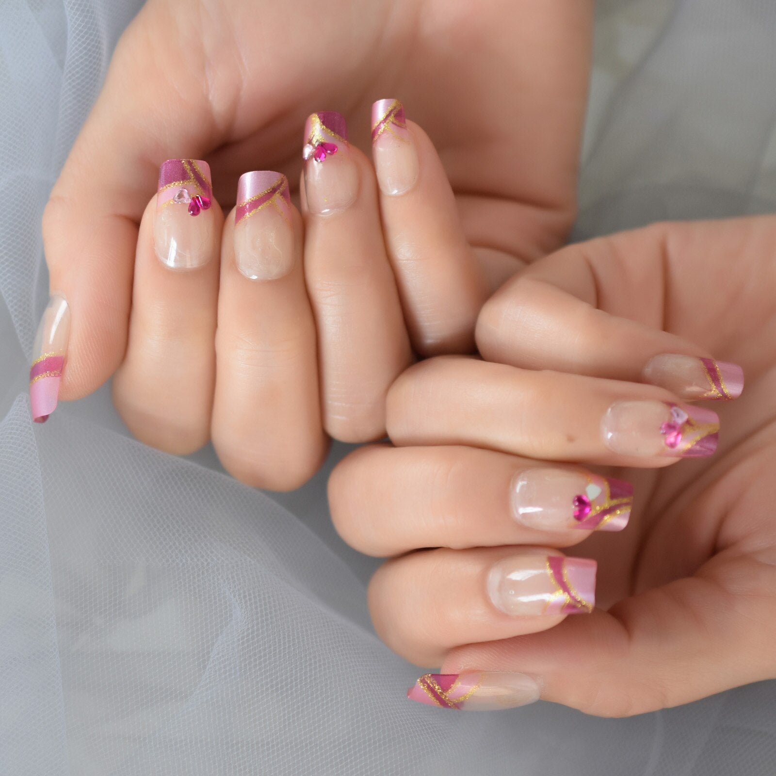 Many Point False Diamond Pre-Design Lovely Charms Full Cover Nails Square Medium-Short Full Cover Nails Supplying Gels Nails Art-Nail Inspo