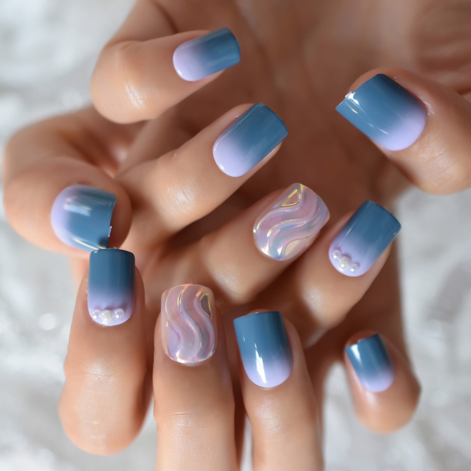 Matte Metallic Press On Nails Holographic Pink Gold Shiny Squavol False Fingernails Pure Color Manicure Tips 24-Nail Inspo