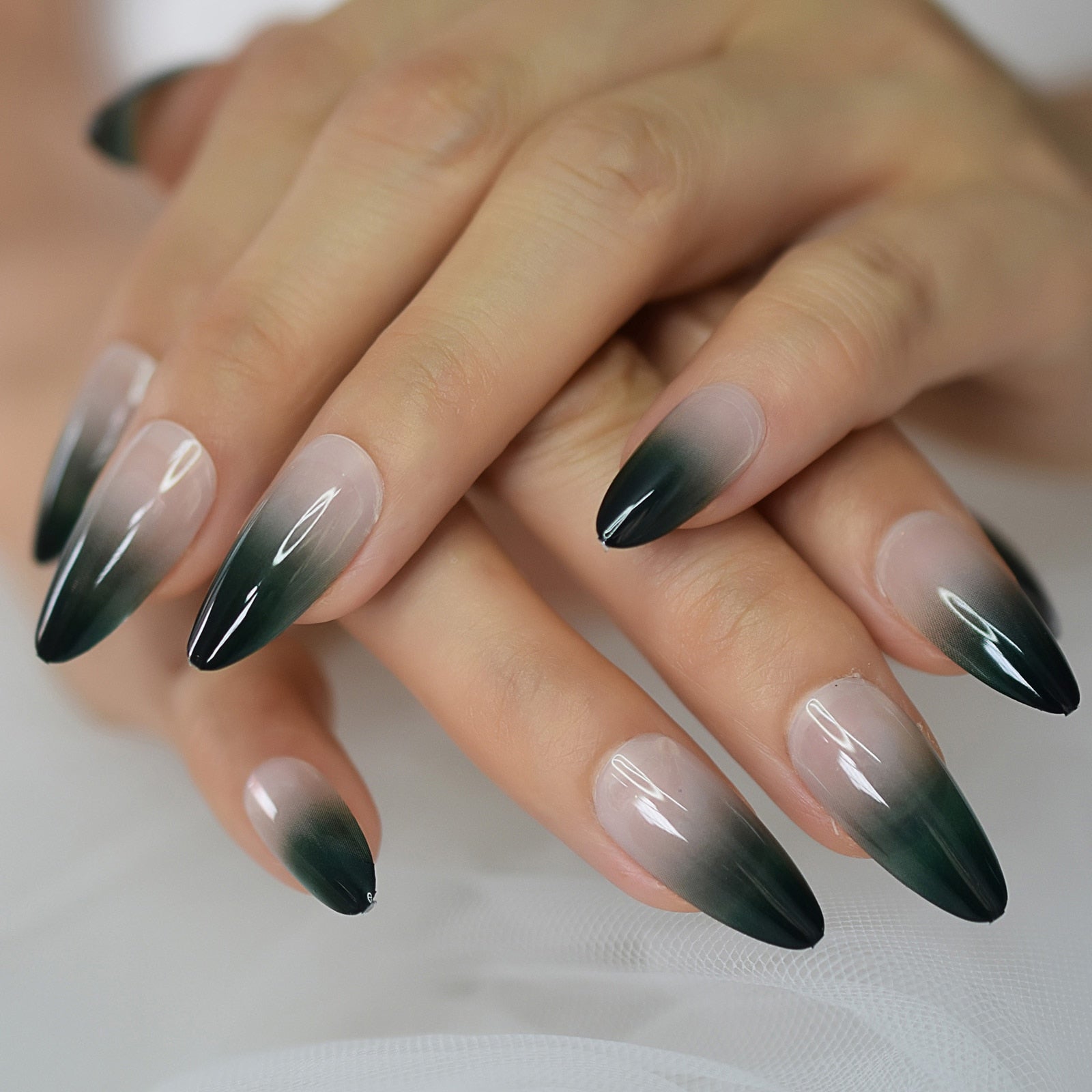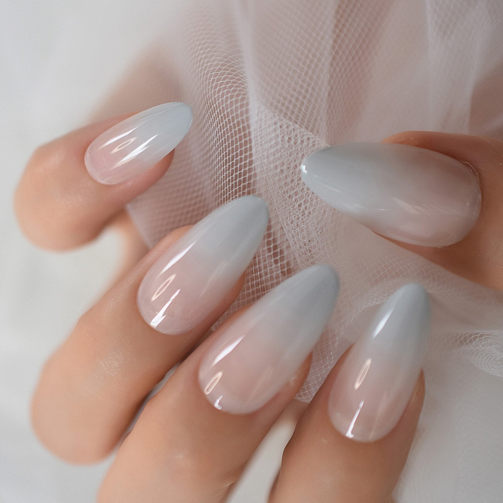 Medium Almond Fadeing Layered Gray&White Gel Tips Decoration Nails False Hand Dummy Stick On Nails Full Cover Nails Charming 24P-Nail Inspo