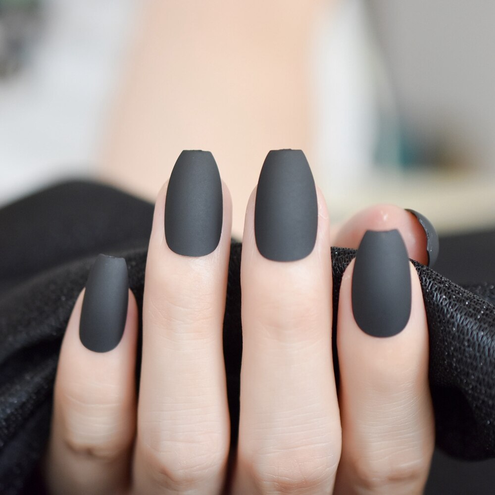 Medium Coffin Pure Black Color Gels Tips Decoration Nails False Hand Dummy Optional Stick On Nails IMABC 24/pcs Sets-Nail Inspo