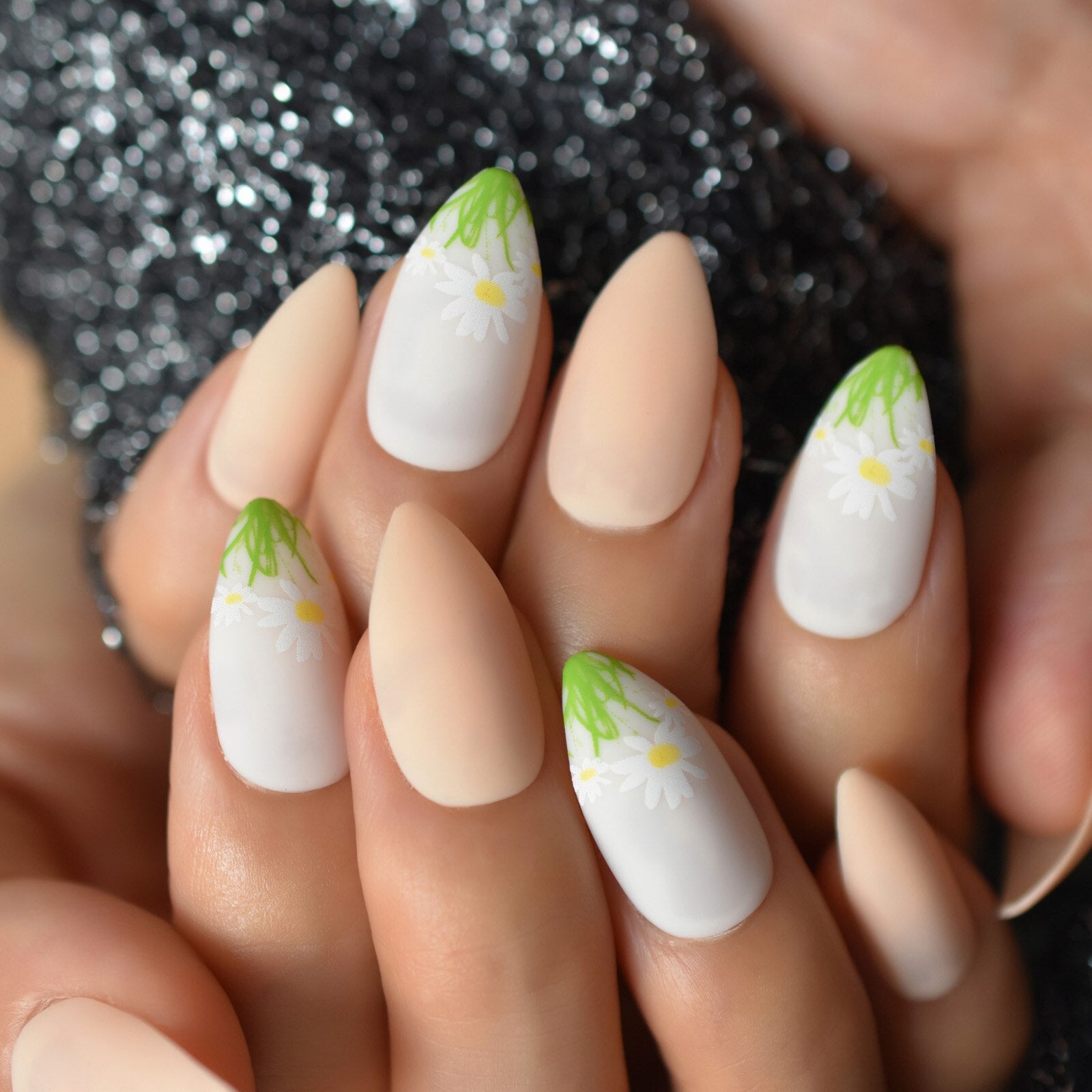 Looks cute on my nails. I had to adjust them according to my nail sizes. The glue fixed them tightly to the nail so far( the second day yet). I applied some top coat for extra shine.