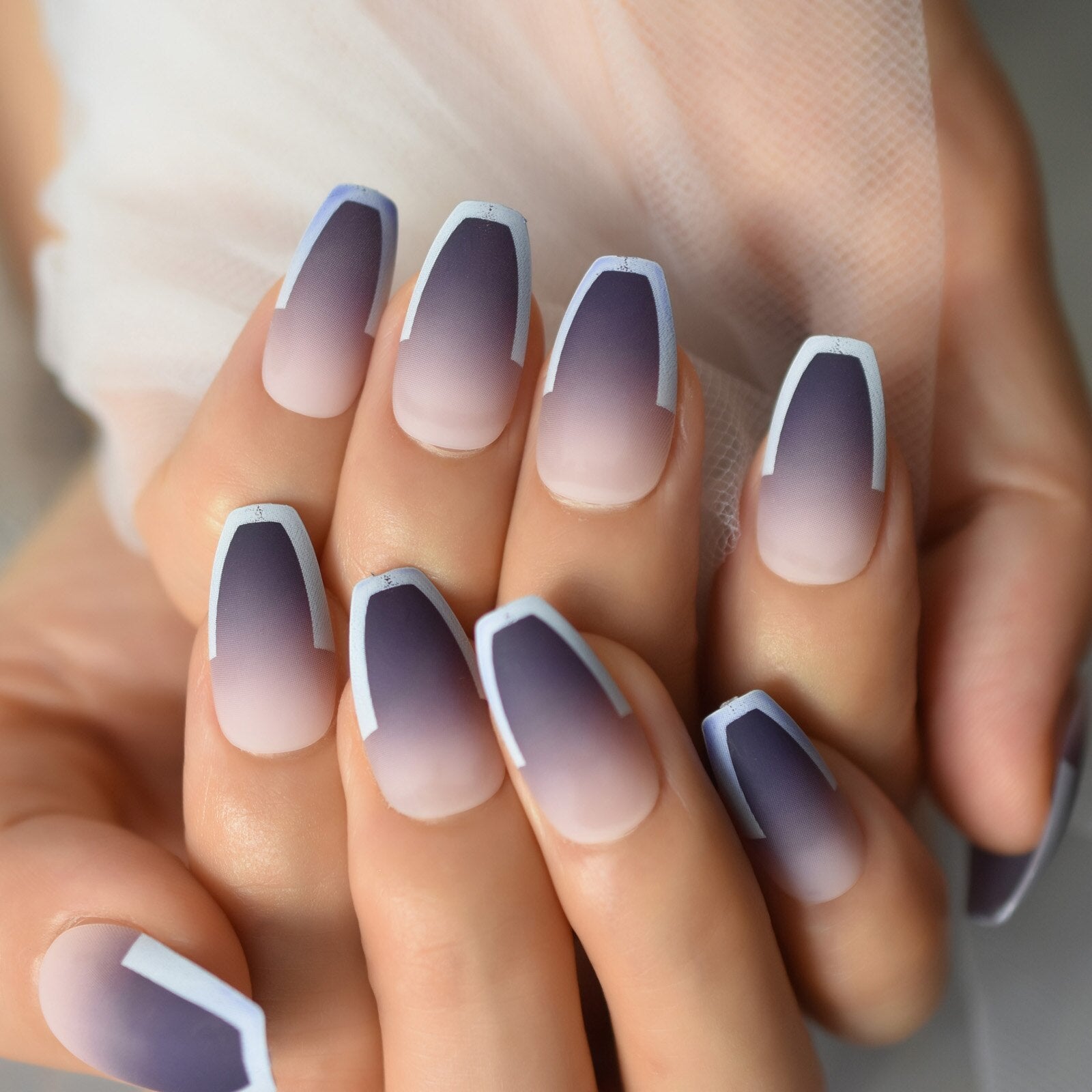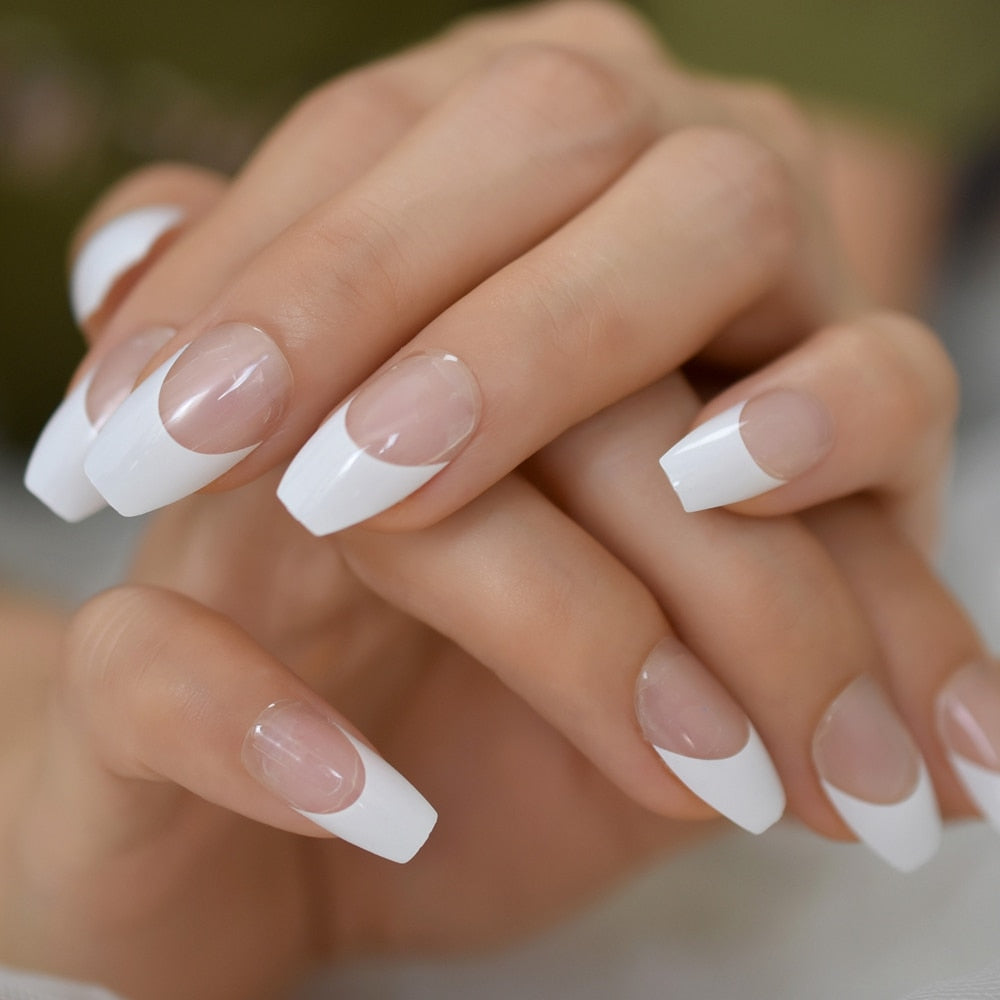 Medium Nail Tips Fingernail Full Cover Coffin Reuseable False Nail Press On Nails French Manicure Nail Art Pre Designs 2021 Aug.-Nail Inspo