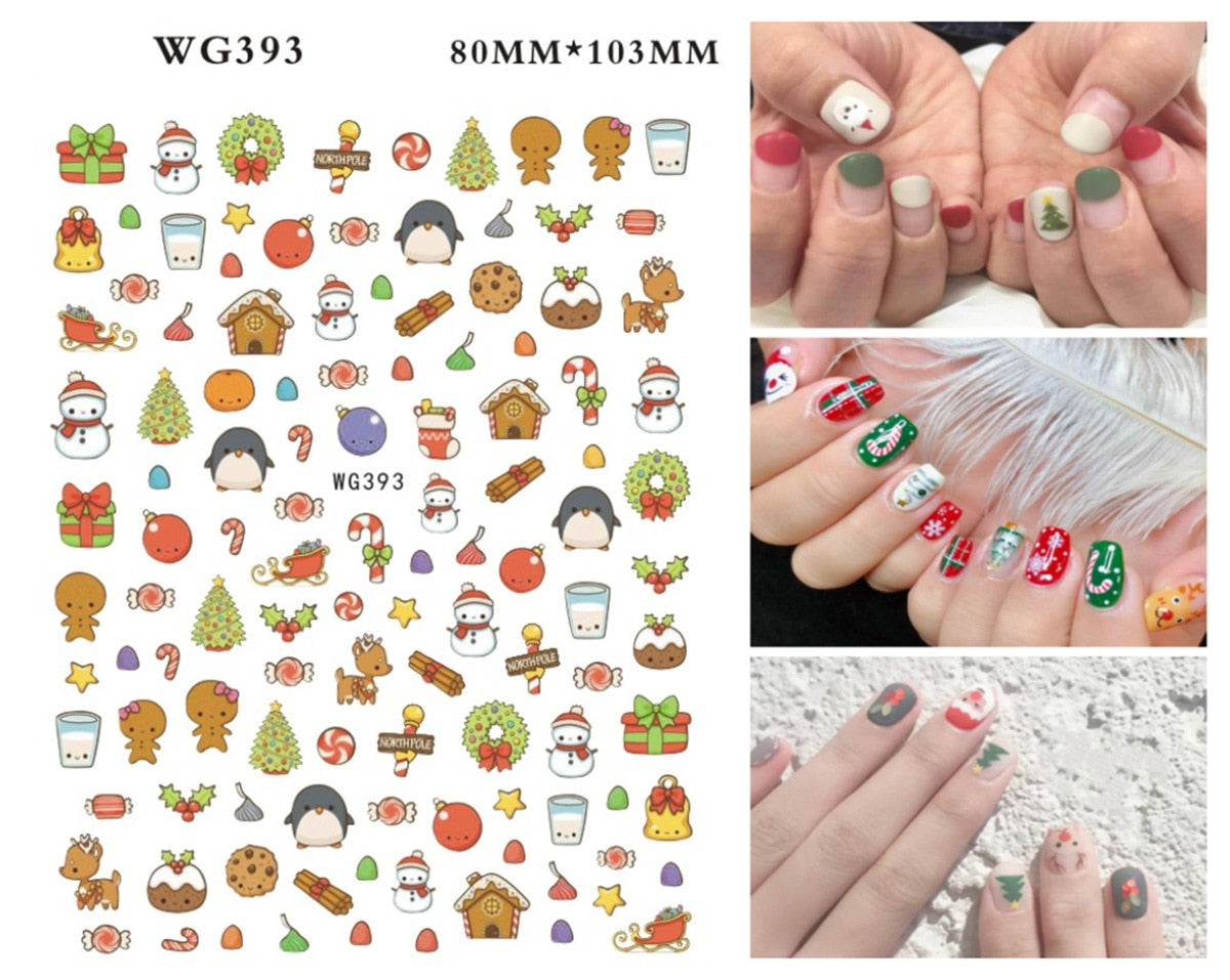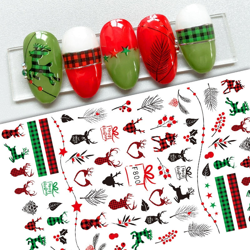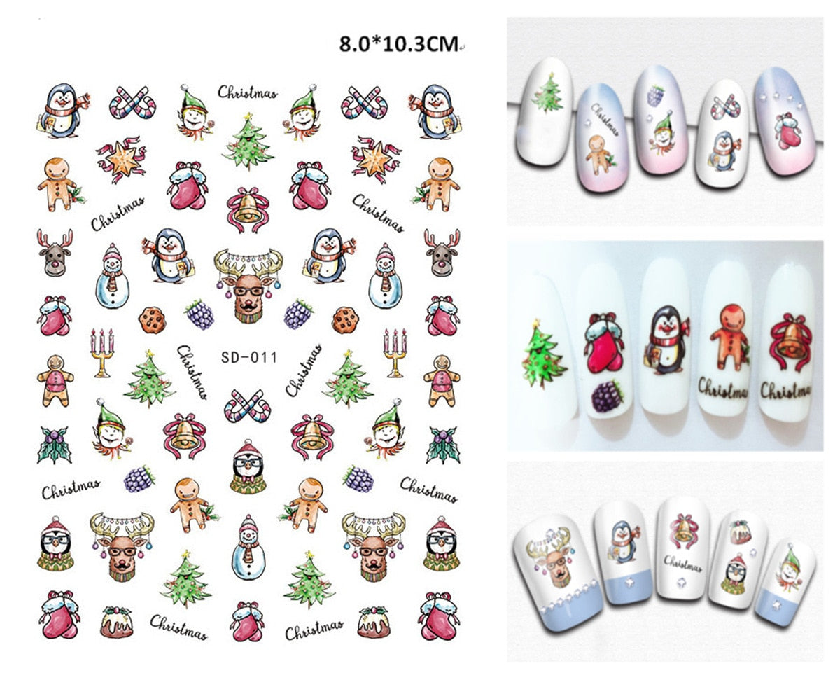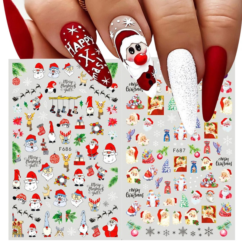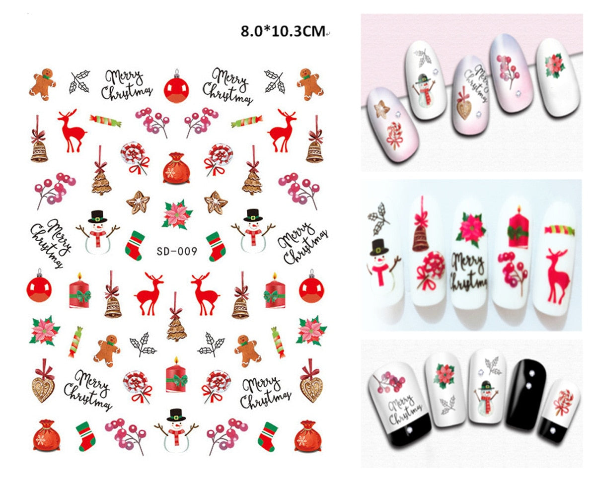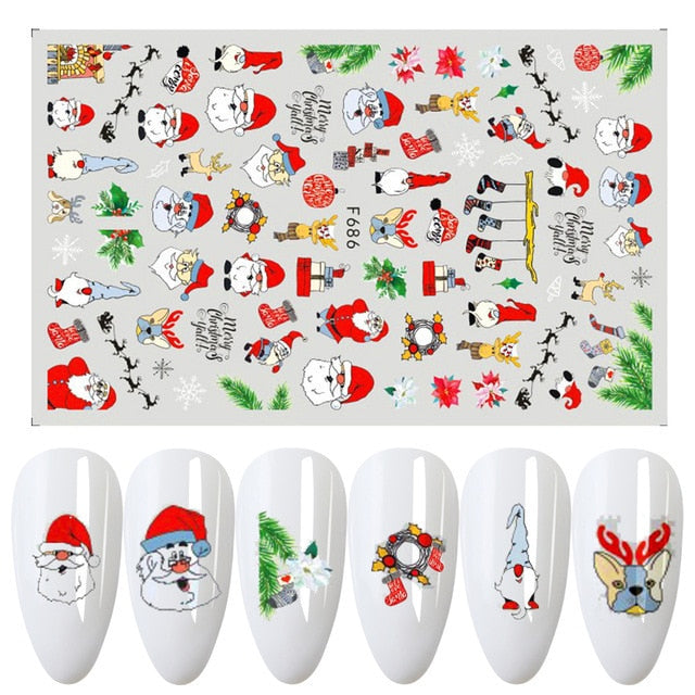Merry Christmas 3D Nails Sticker Winter Cute Cartoon Sliders Snowflake Elk Xmas Tree Decal UV Gel Polisn Manicures Foils Decor-Nail Inspo