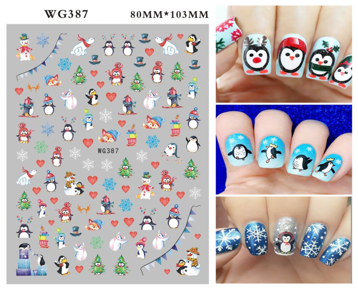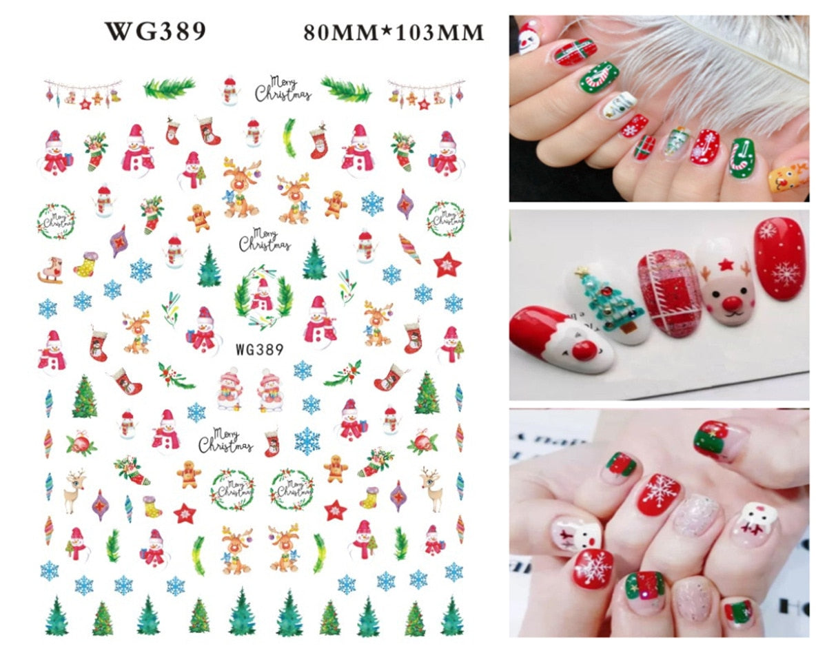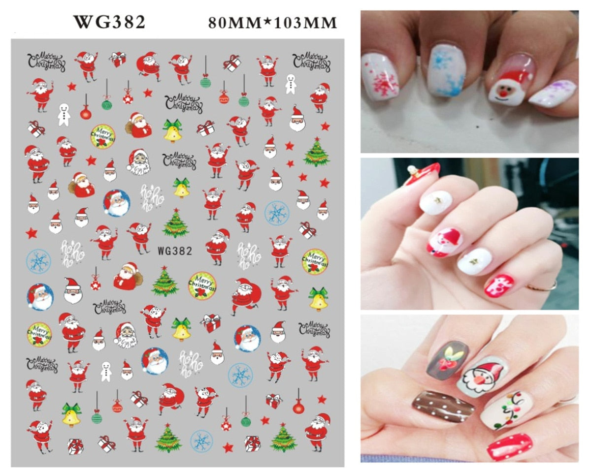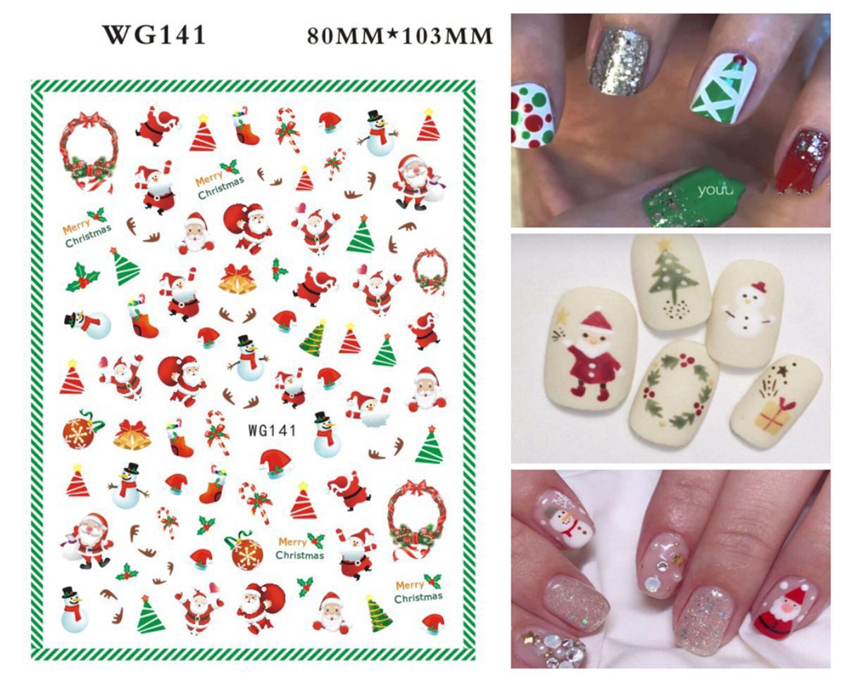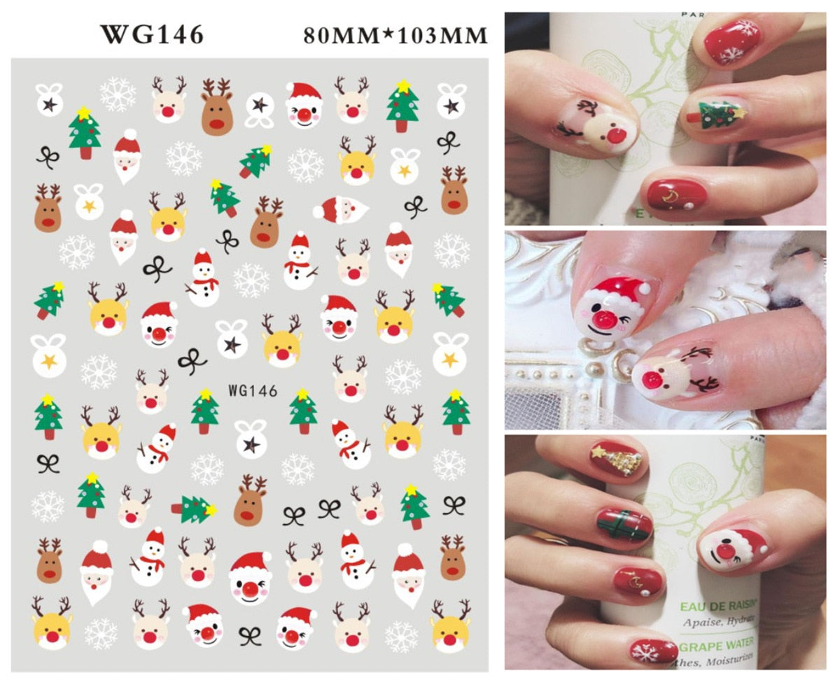 Merry Christmas 3D Nails Sticker Winter Cute Cartoon Sliders Snowflake Elk Xmas Tree Decal UV Gel Polisn Manicures Foils Decor-Nail Inspo