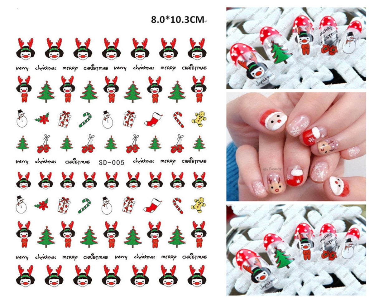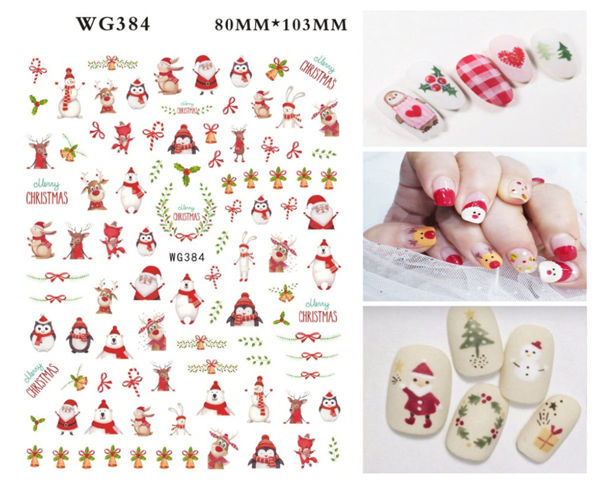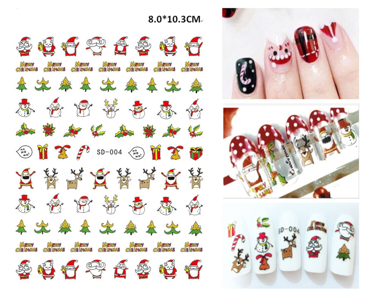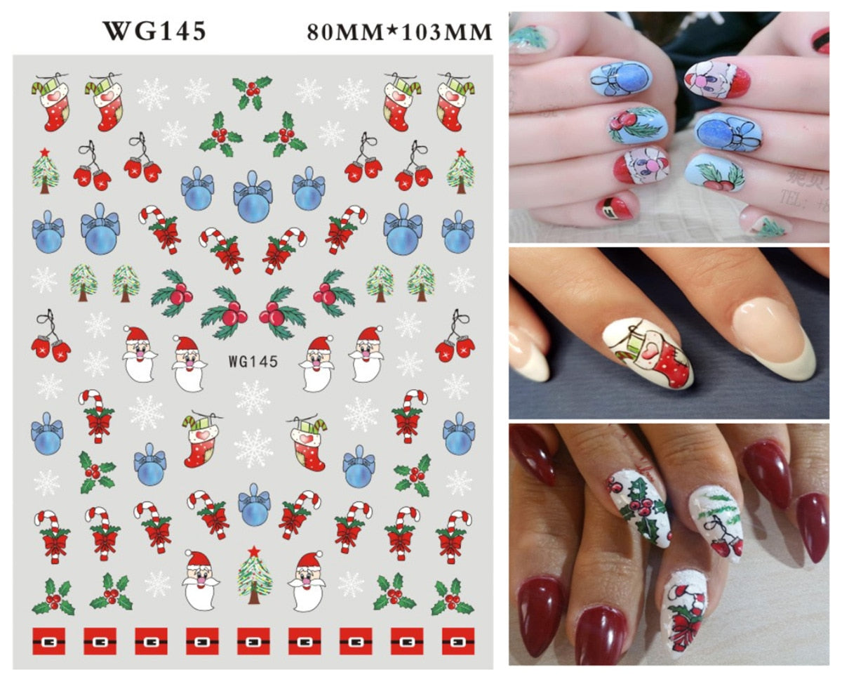 Merry Christmas 3D Nails Sticker Winter Cute Cartoon Sliders Snowflake Elk Xmas Tree Decal UV Gel Polisn Manicures Foils Decor-Nail Inspo