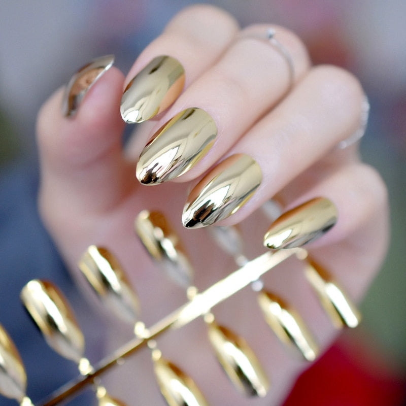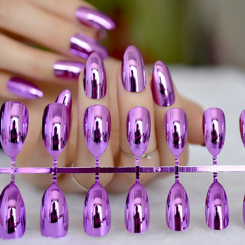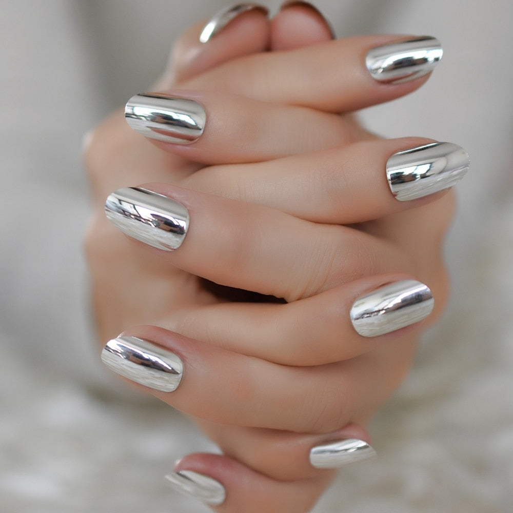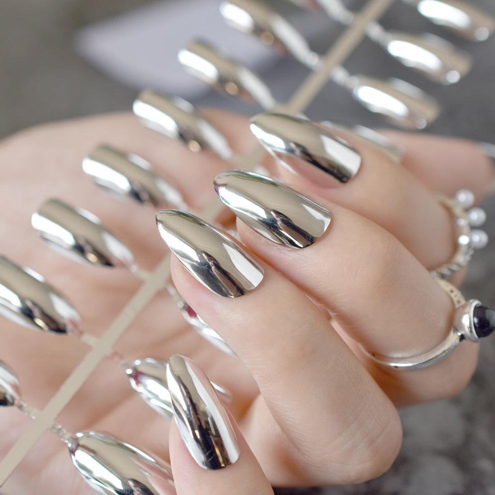 Mirror Silver False Nails STILETTO Point Metallic Acrylic Nail Tips 24pcs/kit Easy for Daily wear-Nail Inspo