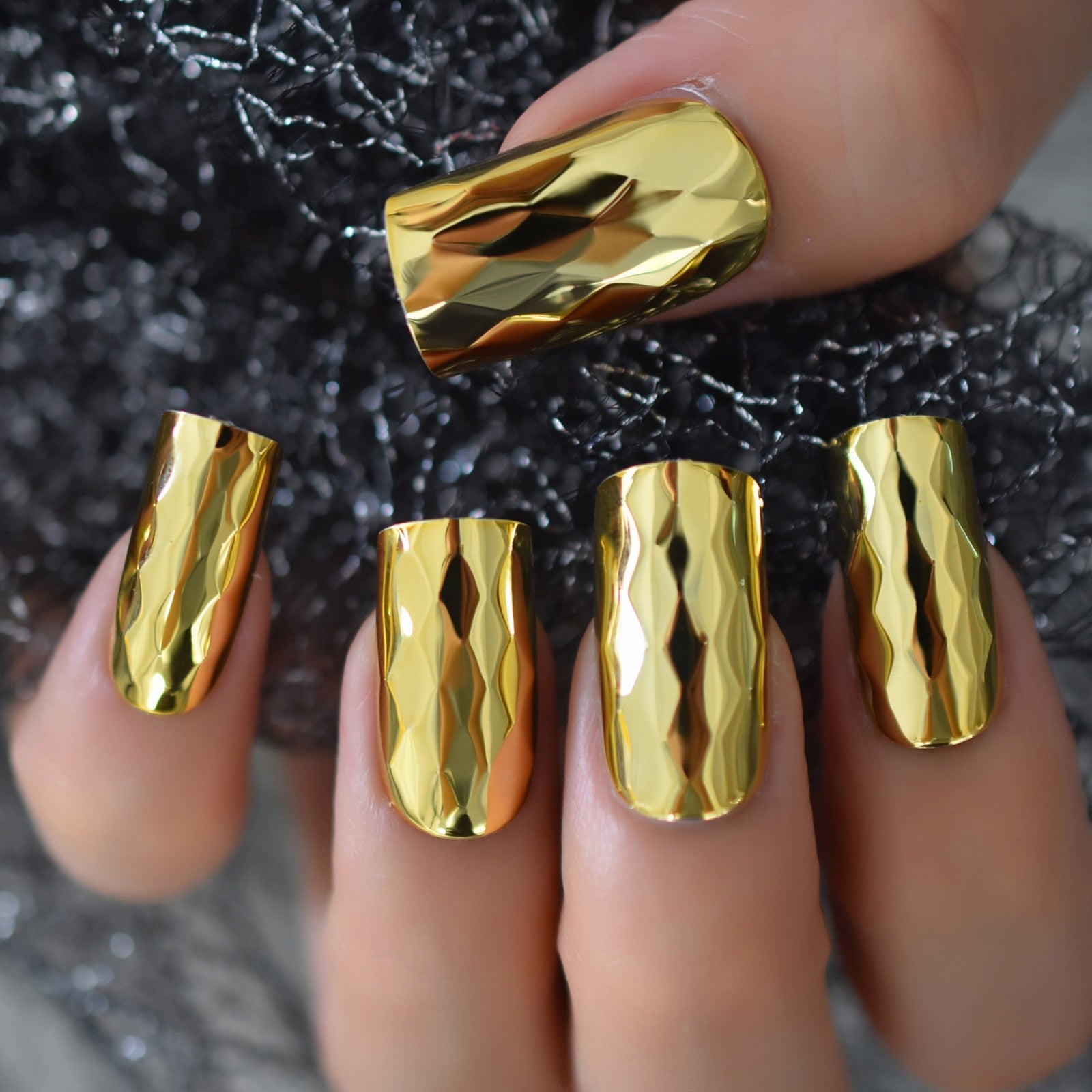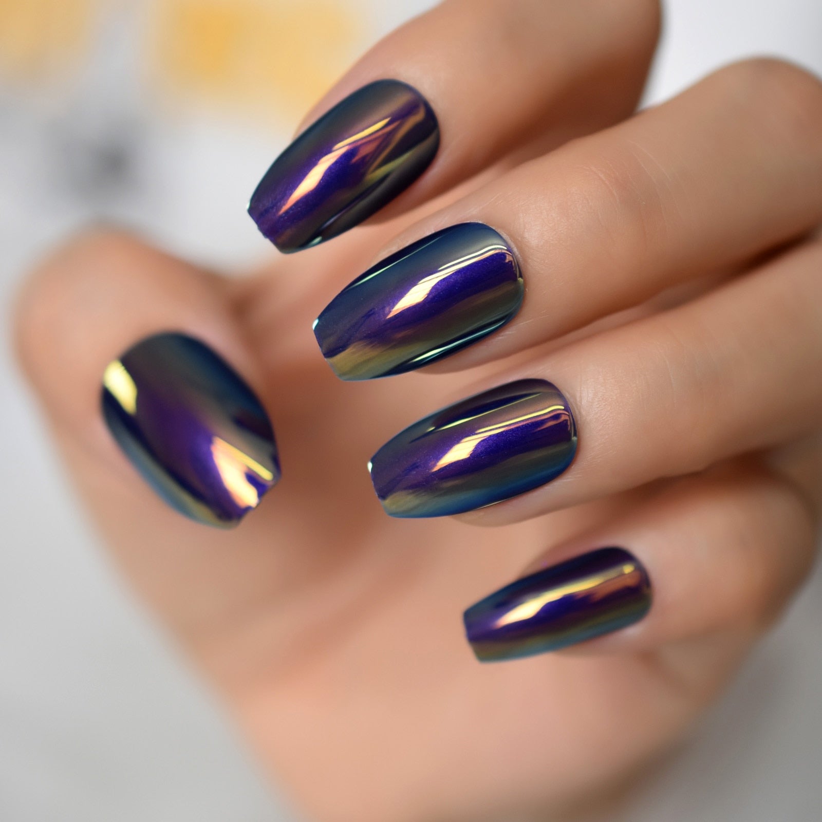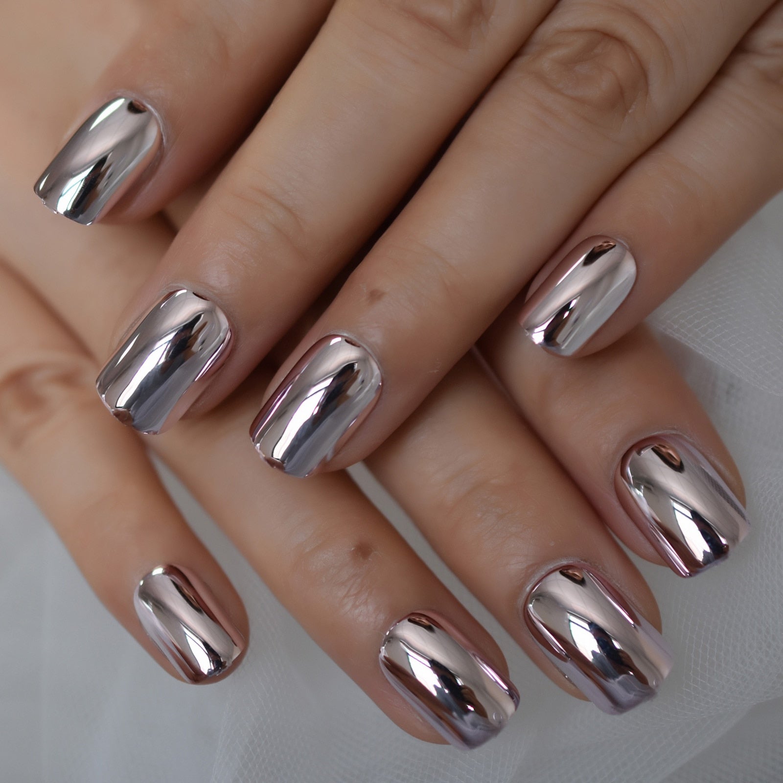 Mirror Silver False Nails STILETTO Point Metallic Acrylic Nail Tips 24pcs/kit Easy for Daily wear-Nail Inspo