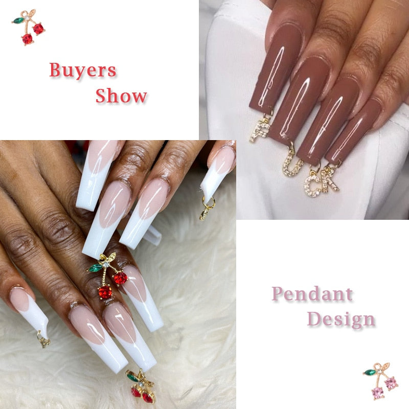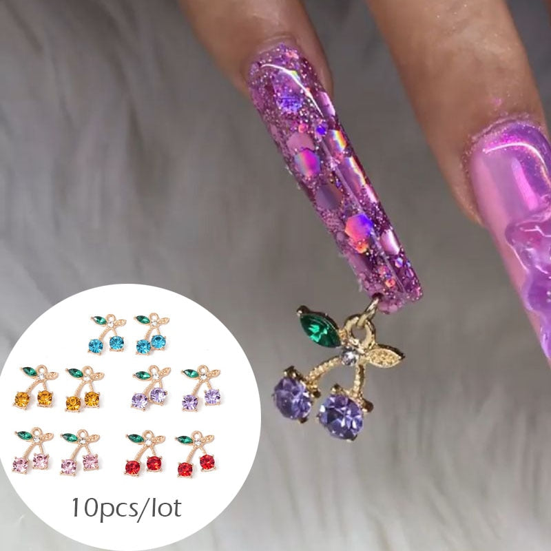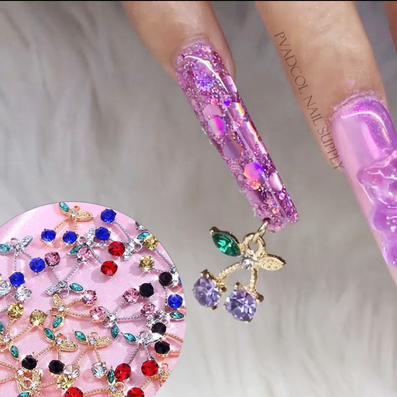 Mixed Cherry Dangle Nail Piercing Crystal Rhinestones Charms Glitter Diamond Gems 3D Pendant Jewelry Tips Nail Art Decoration-Nail Inspo