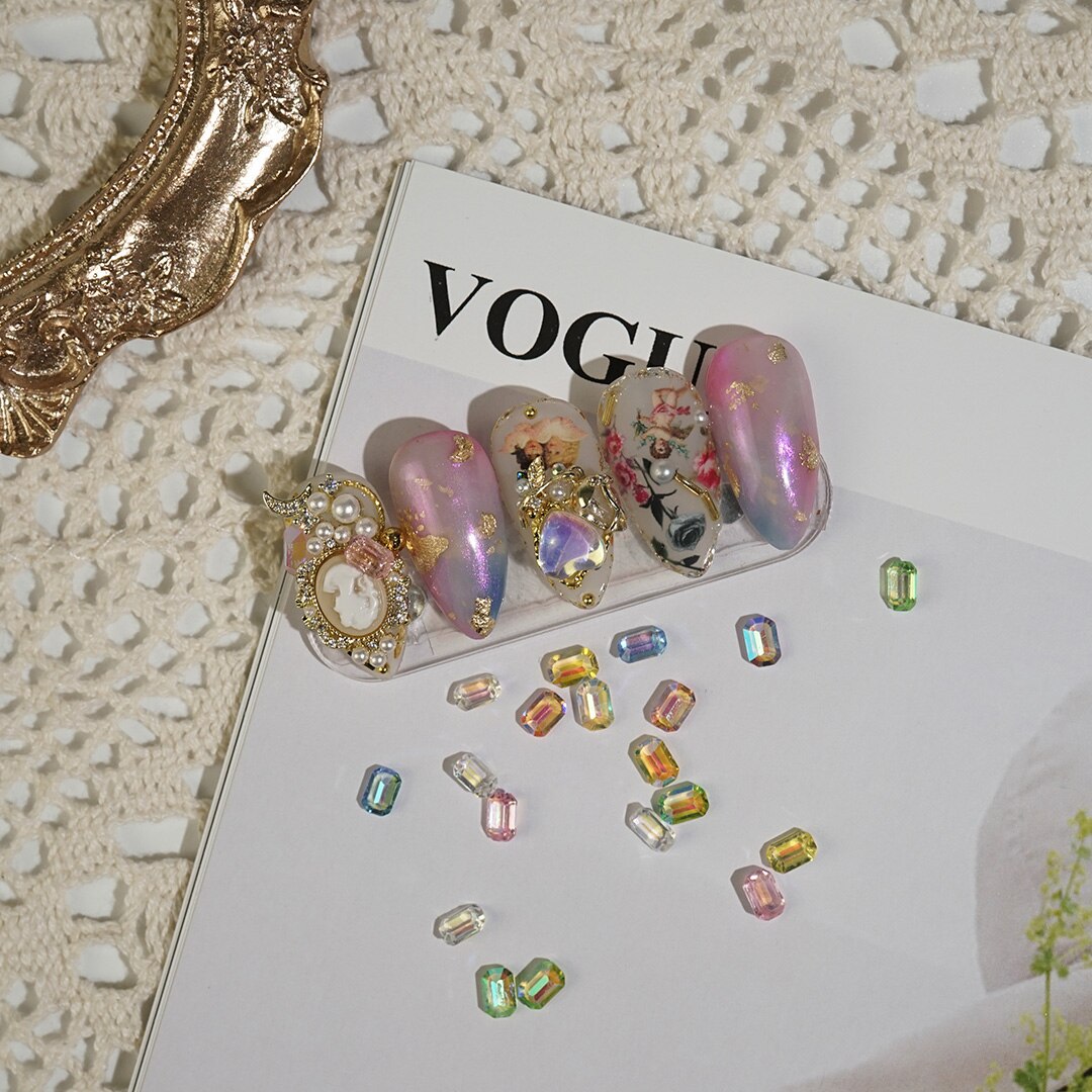 Mixed Colourful Aurora Octagon Crystal Nail Art Decorations Accessory Soft Nail Art Jewelry Manicure Accessories-Nail Inspo