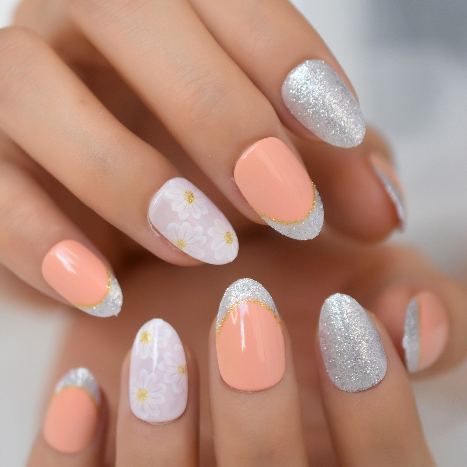 Mixed Glitter Nail Flowers Nail Optionals Medium Short Almond Sharp Pre Designs Charms Putty Lovely Supplies For Professionals-Nail Inspo