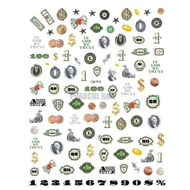 Money Dollar Sign Nail Art Stickers Decal Self Adhesive 3D Manicure Tips Decals Decoration Tool-Nail Inspo