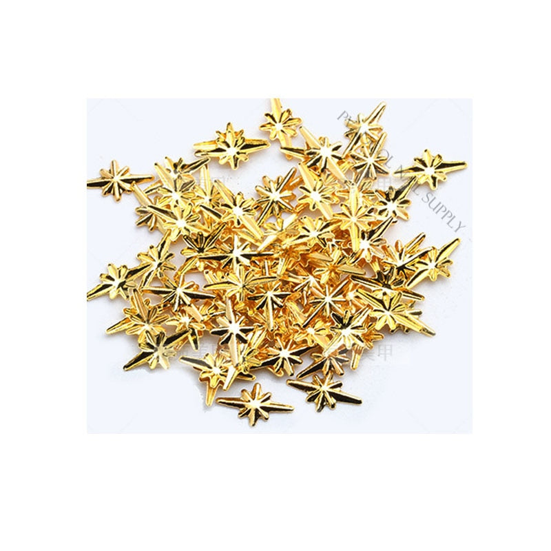 Moon Star Nails Gold Metallic Nail Sequins Charms 3D Nail Art Tips Decoration Press On Manicure Supply-Nail Inspo