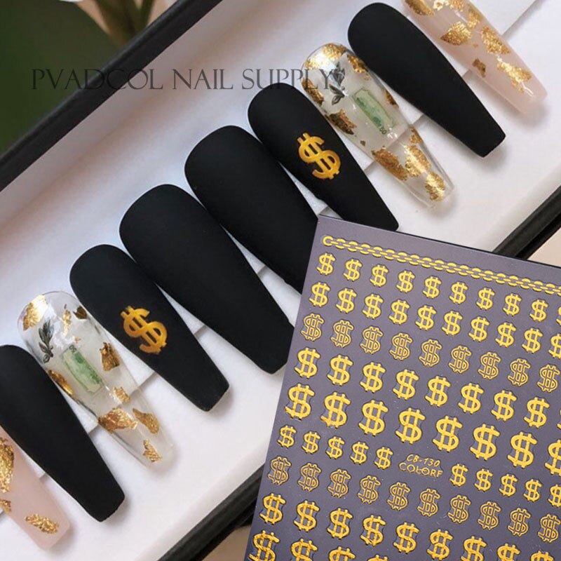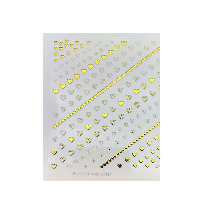 Nail Art 3D Stickers Decals Hearts Gold Manicure Nails Design Adhesive Sticker Wraps Tip Decoration-Nail Inspo