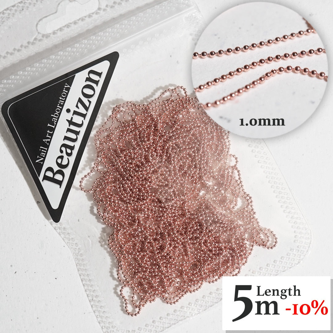 Nail Chain 0.8mm/1.0mm Rose Gold Silver Pixie Stone Decorations Accessory Metal Steel Ball Chain Nail Art Jewelry-Nail Inspo