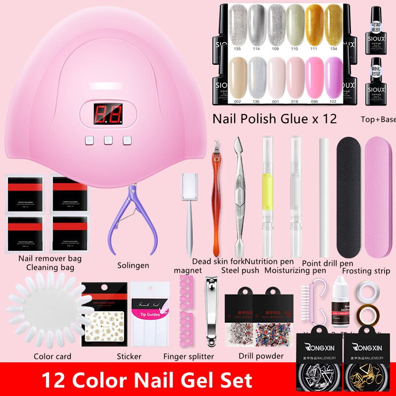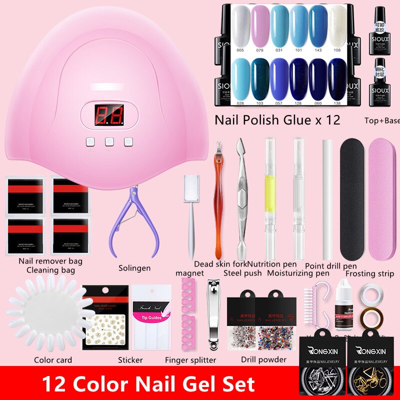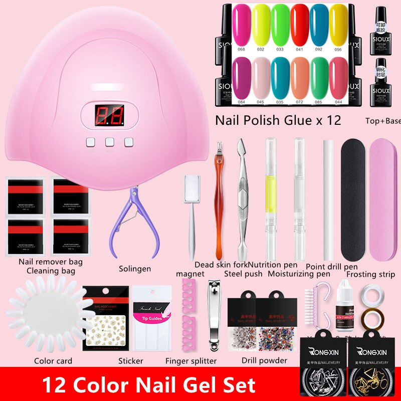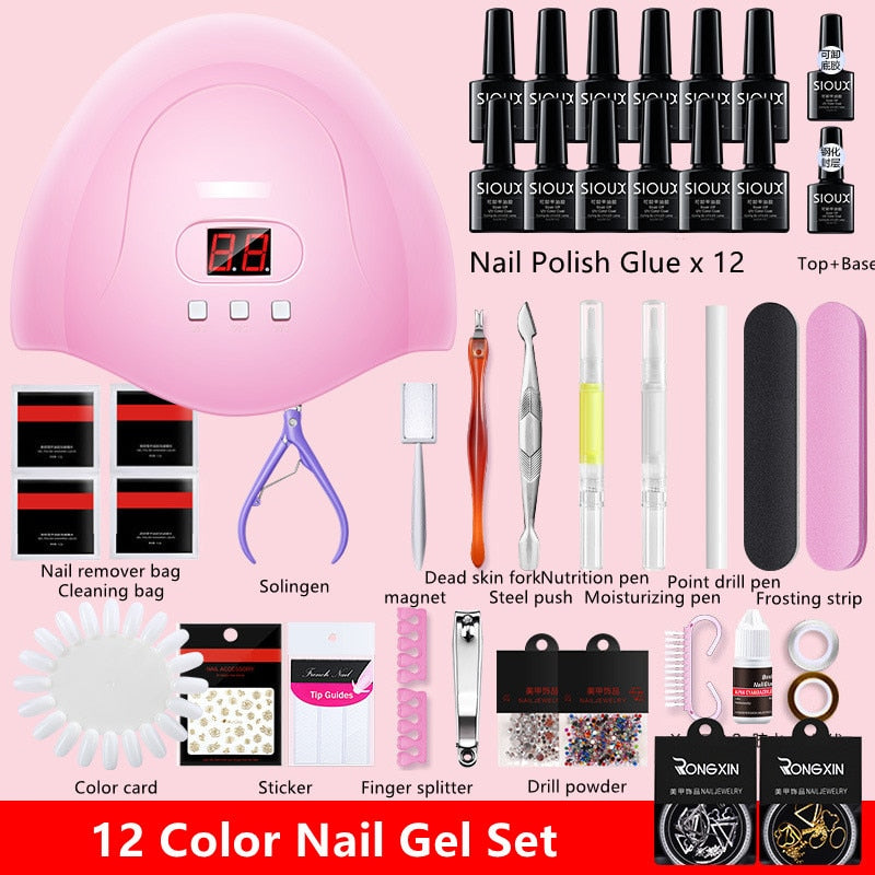 Nail Set UV LED Lamp Dryer with 12 Pcs Nail Gel Polish Kit Soak Off Manicure Tools Set Electric Nail Drill Nail Tools-Nail Inspo