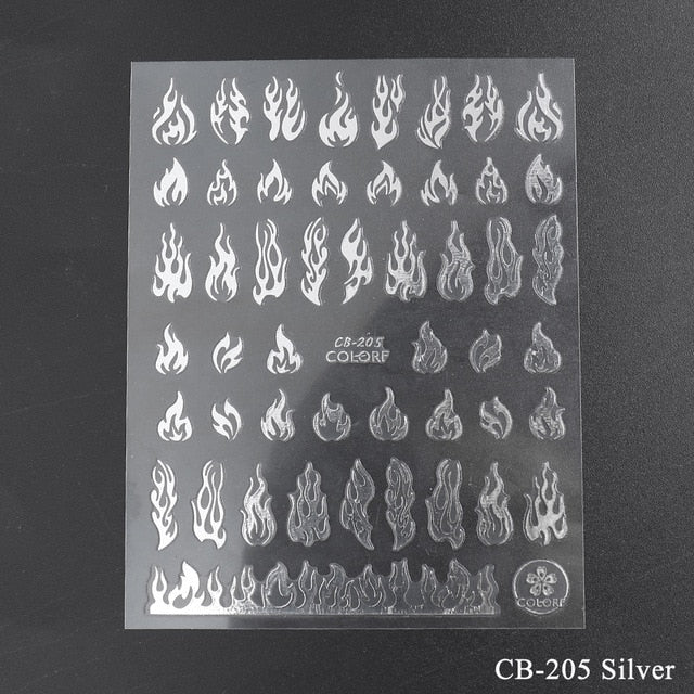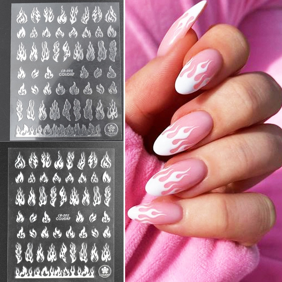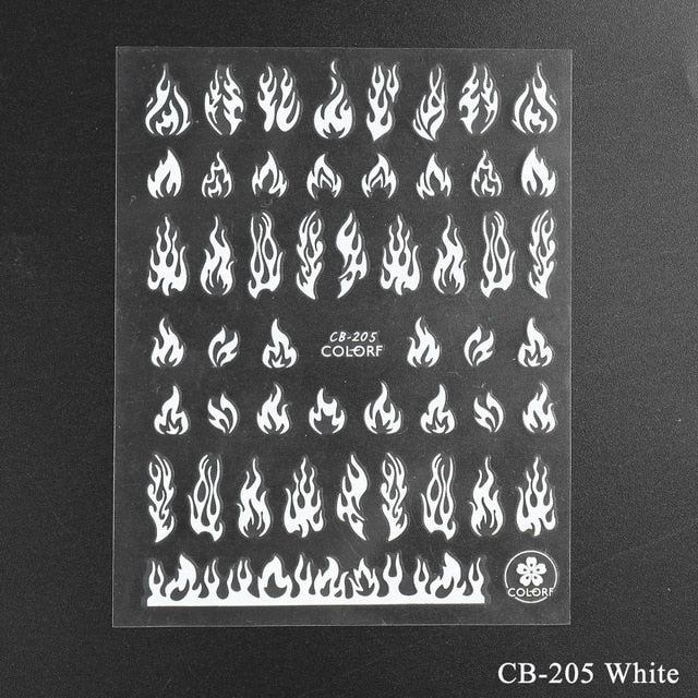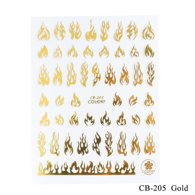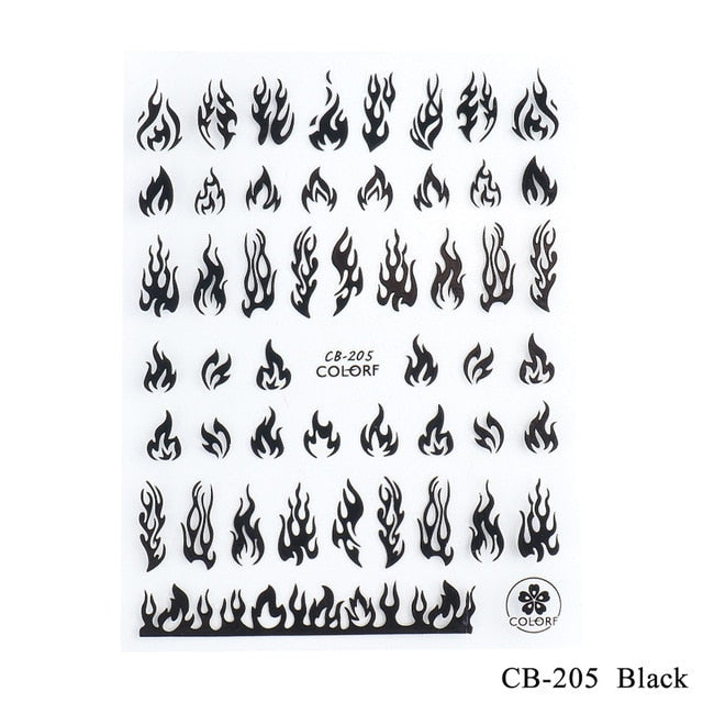 Nail Stickers Back Glue Black White Gold Silver Flame Shapes Designs Nail Decal Decoration Tips For Beauty Salons-Nail Inspo