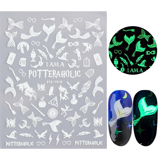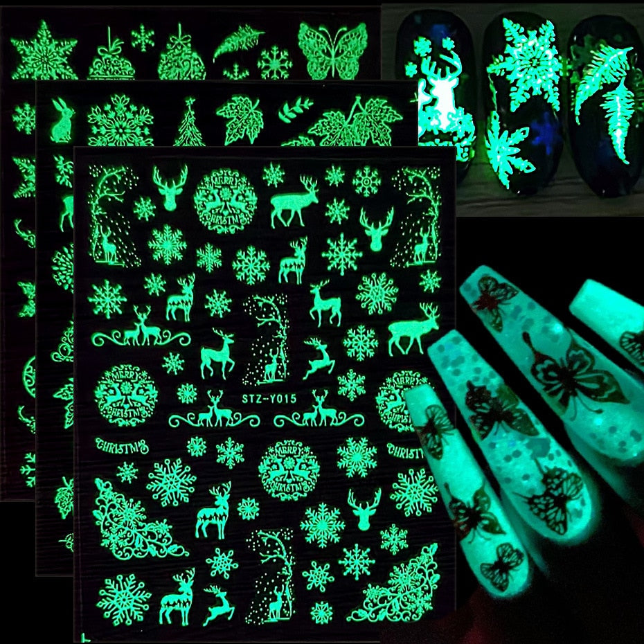Nail Stickers Back Glue Fluorescent Light Christmas Snowflake Animal 3D Designs Nail Decal Decoration Tips For Beauty Salons-Nail Inspo