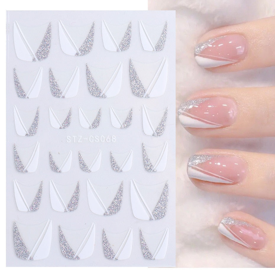 Nail Stickers Back Glue Glitter V-shaped French Patch Skirt Streamers Milk Designs Nail Decal Decoration Tips For Beauty Salons-Nail Inspo