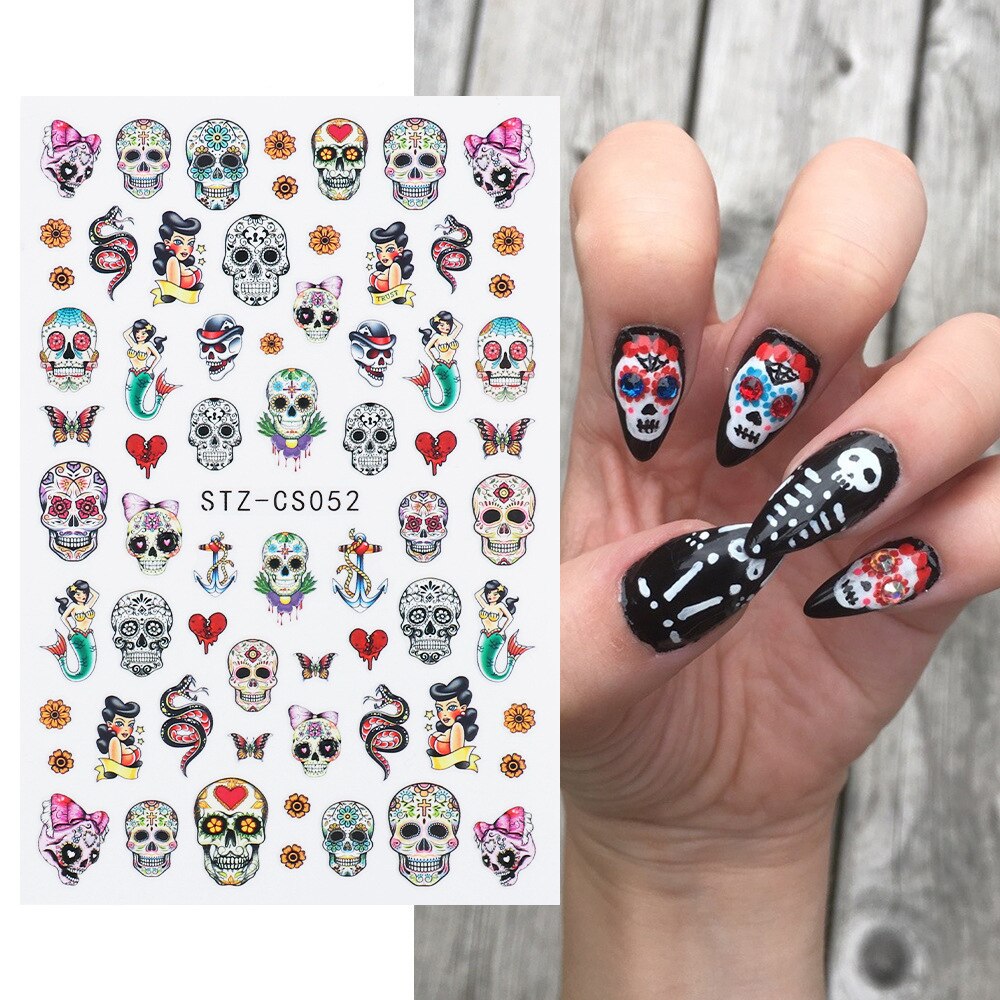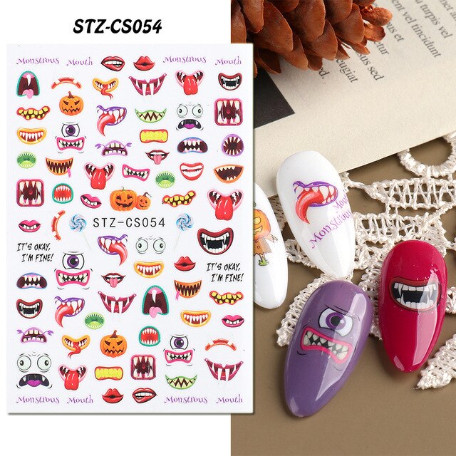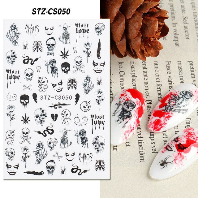 Nail Stickers Back Glue Halloween Pumpkin Zombie Skull Golden Maple Leaf Designs Nail Decal Decoration Tips For Beauty Salons-Nail Inspo