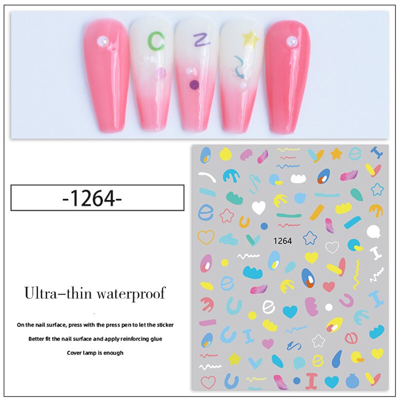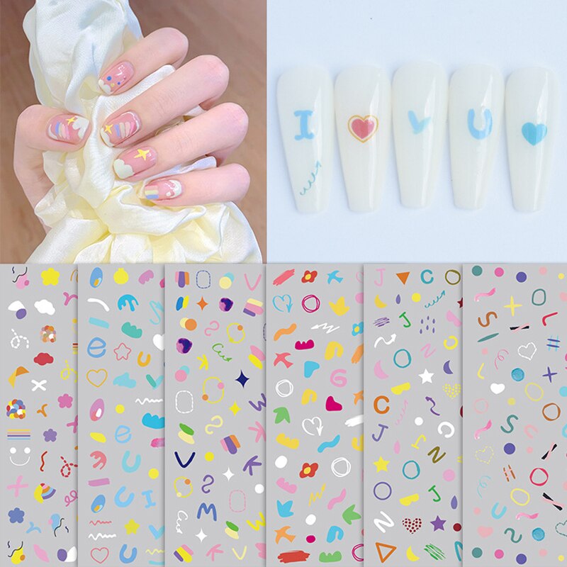 Nail Stickers Back Glue Multiple Color Cute Cartoon Round Symbol Designs Nail Decal Decoration Tips For Beauty Salons-Nail Inspo