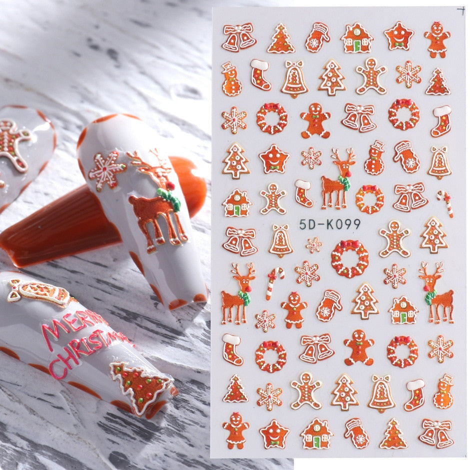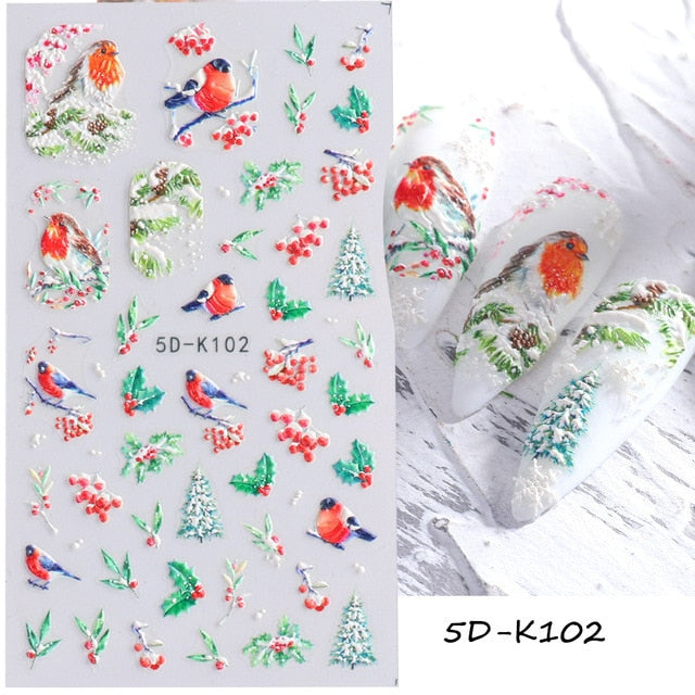 Nail Stickers Embossed 5D Color Christmas Snowflake Snowman Bird Gift Decals Decoration Tips For Beauty Salons-Nail Inspo