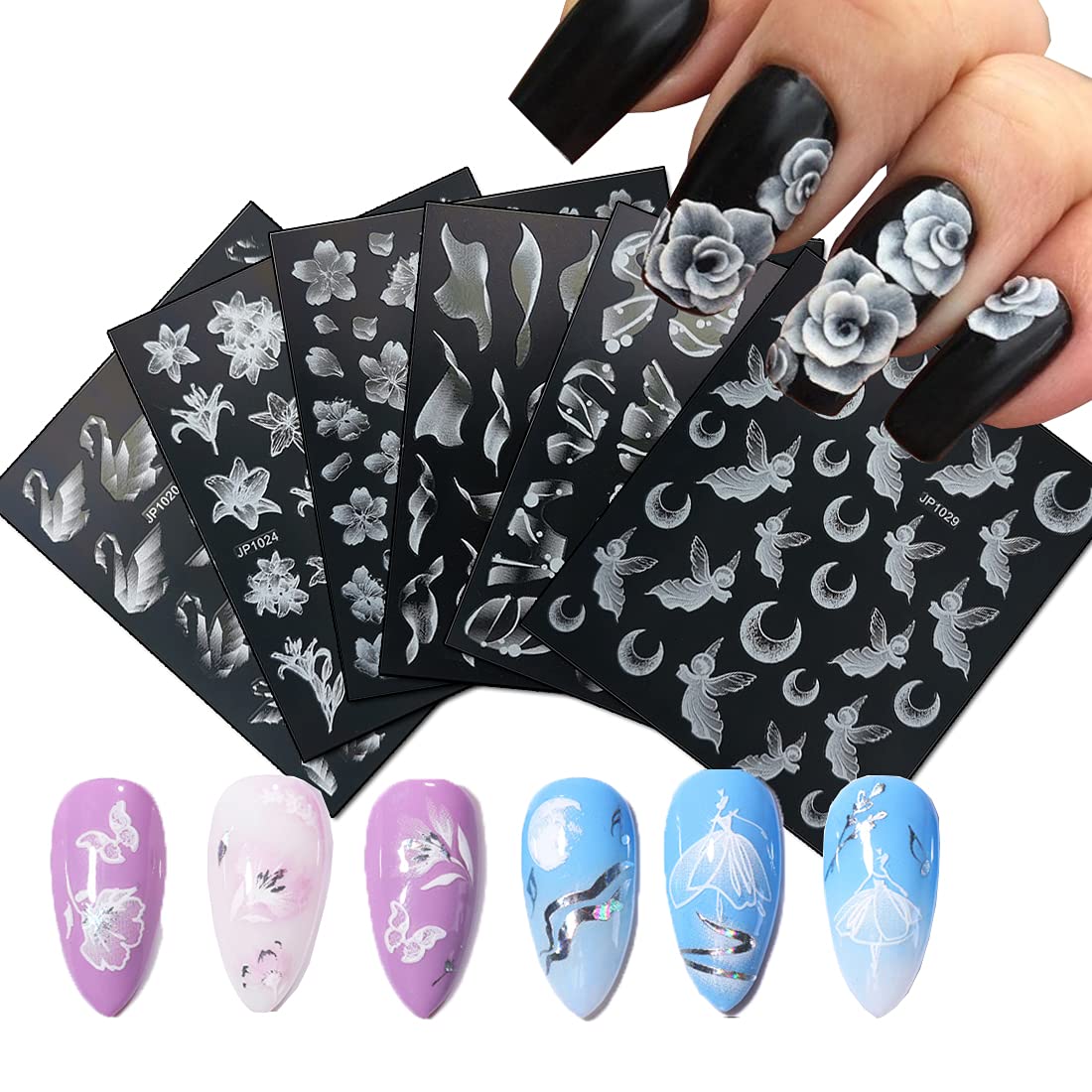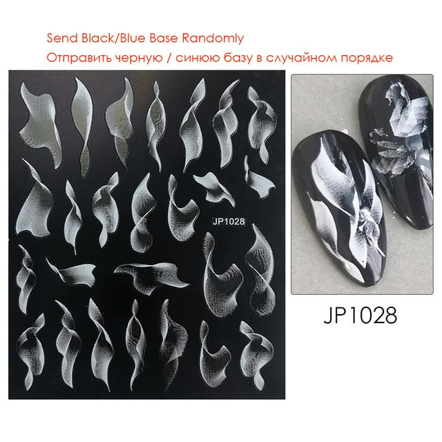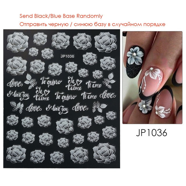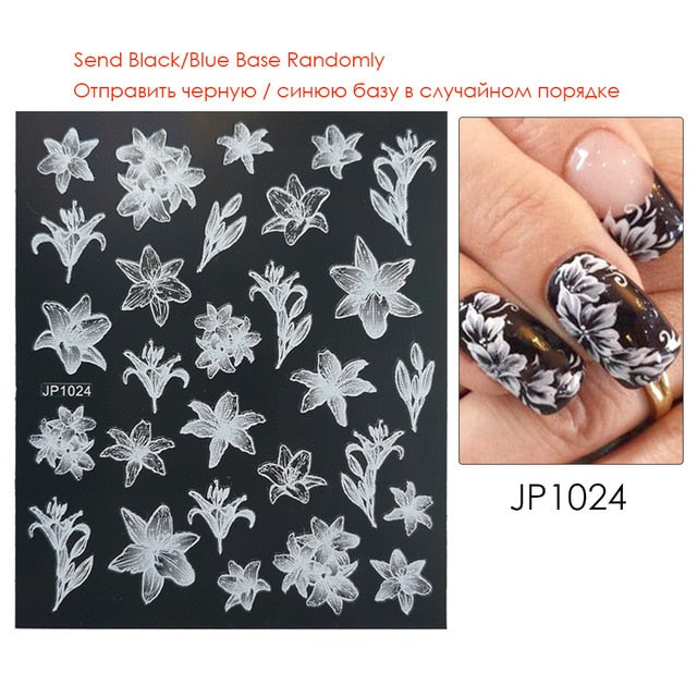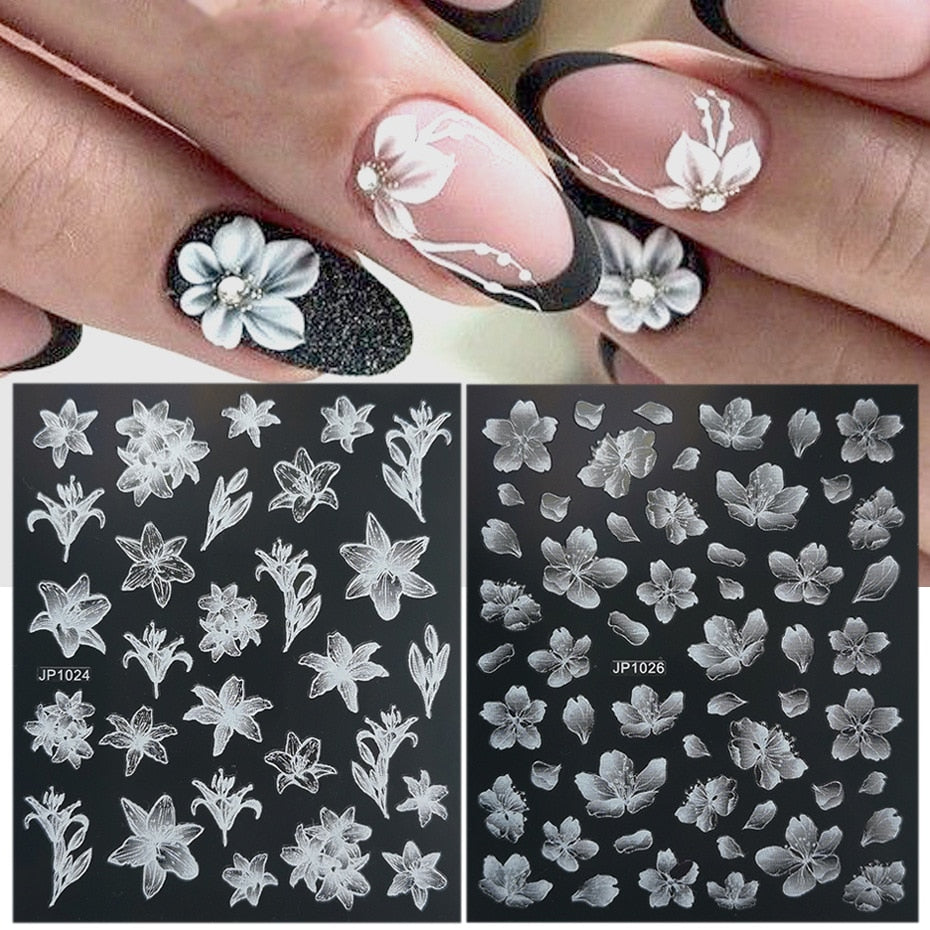 Nail Stickers Embossed 5D Gradually White Butterfly Moon Leaves Flower Designs Back Glue Nail Decals Tips For Beauty Salons-Nail Inspo