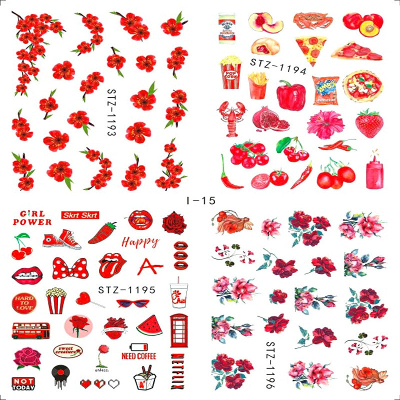 Nail Stickers Water Transfer Flowers Leafs Abstract Art Designs 4Pcs/Set Nail Decal Decoration Tips For Beauty Salons-Nail Inspo