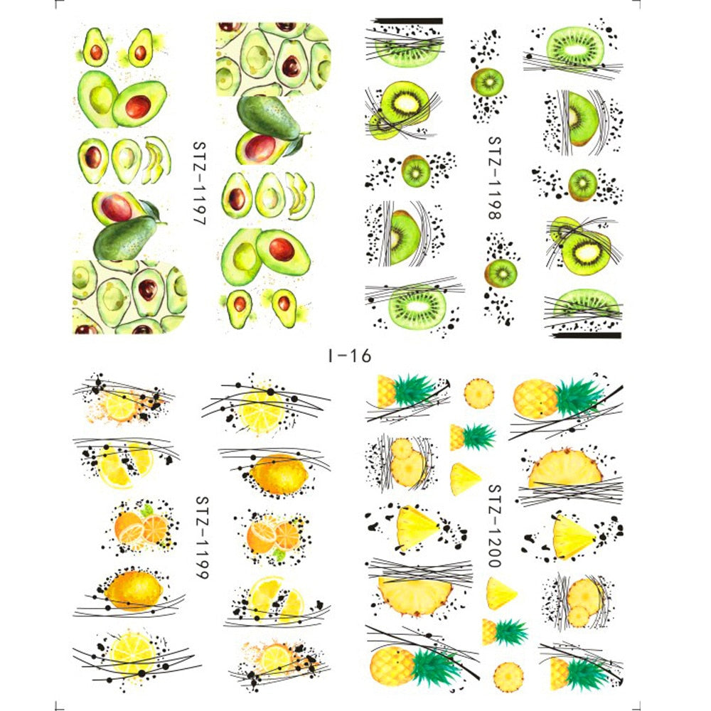 Nail Stickers Water Transfer Fruits Abstract Art Designs 4Pcs/Set Nail Decal Decoration Tips For Beauty Salons-Nail Inspo