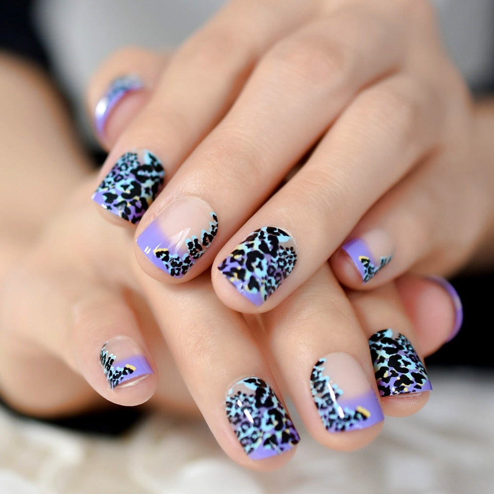 Natural Nude Purple French False Fake Nails Press on Leopard Nails Art Tips Daily Office Finger Wear Manicure Tool 515-1-Nail Inspo