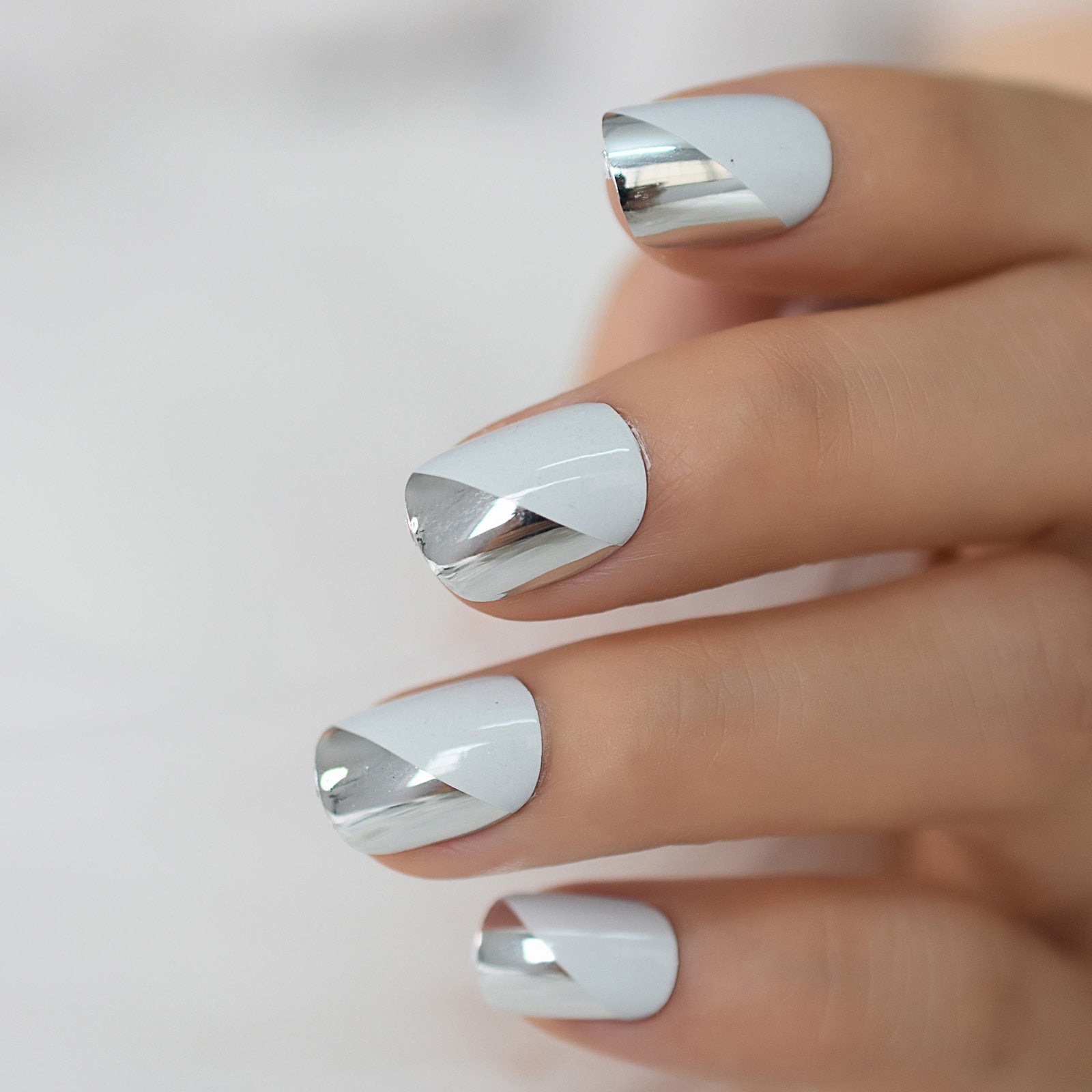 - Choose a suitable size of adhesive stickers or nail glue for your nails and stick it on your nails.