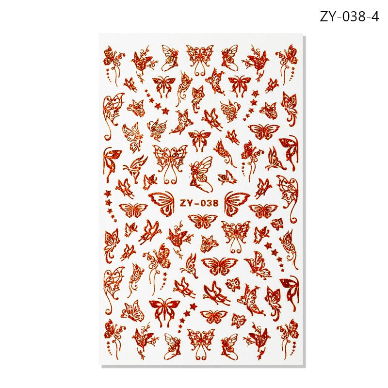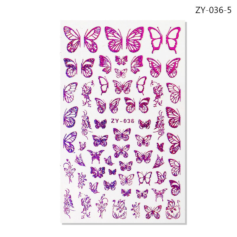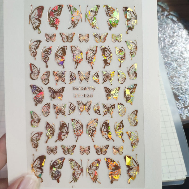 NEW Holographic 3D Laser Butterfly Nail Art Stickers Gold Silver Nail Adhesive Sliders Decals Laser Sticker Decor DIY Manicure-Nail Inspo