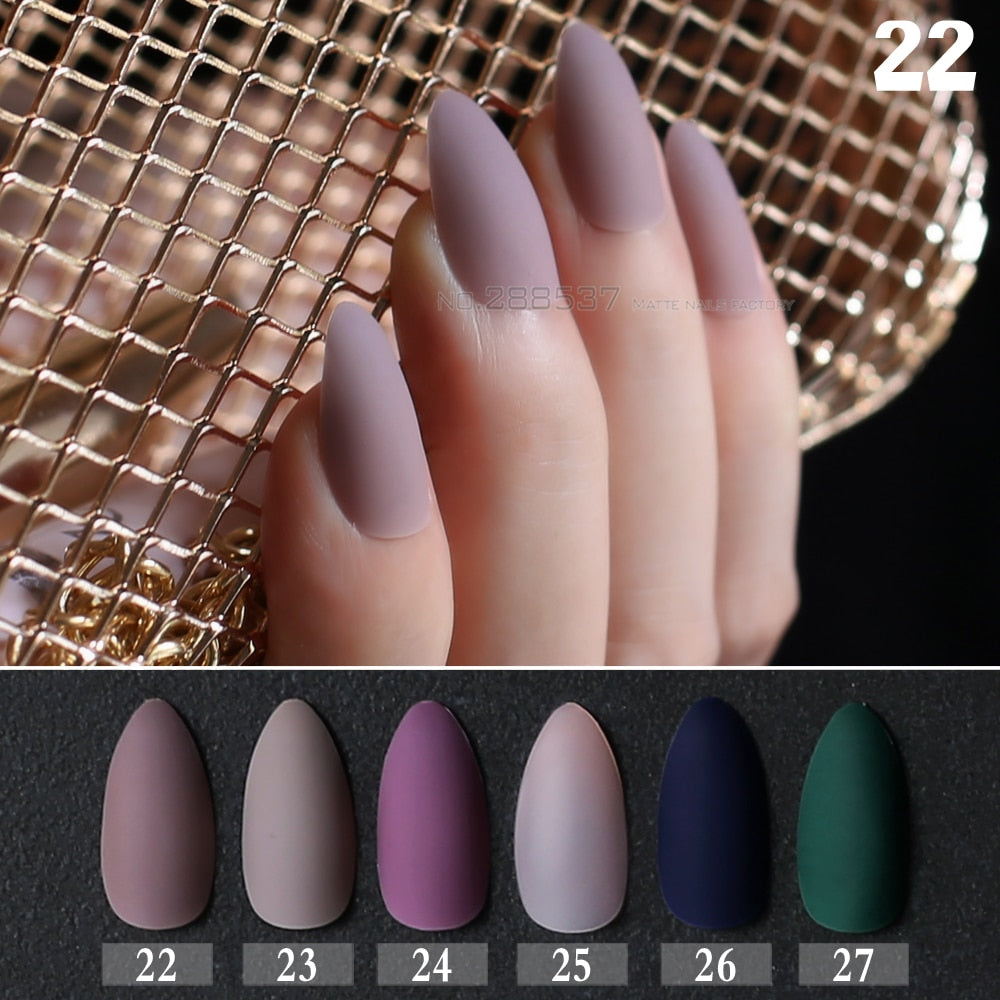 New Matte False Short Pointed Soft Pink Nude Red Black Blue fake stiletto nails full cover Pure colour candy Purple Khaki White-Nail Inspo
