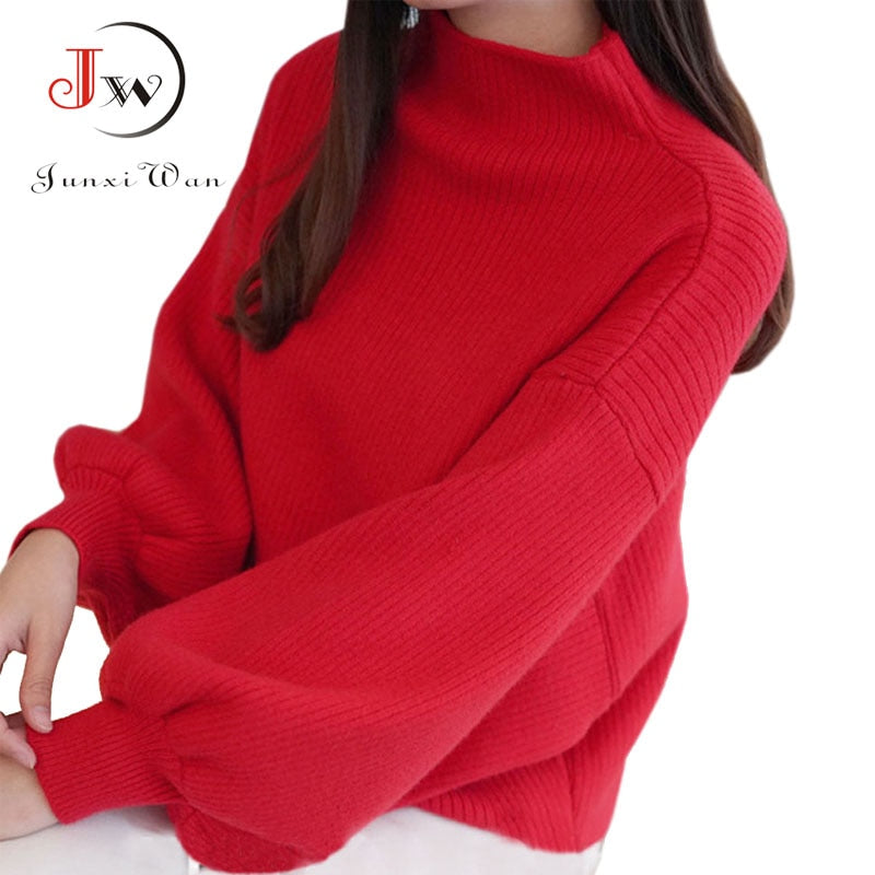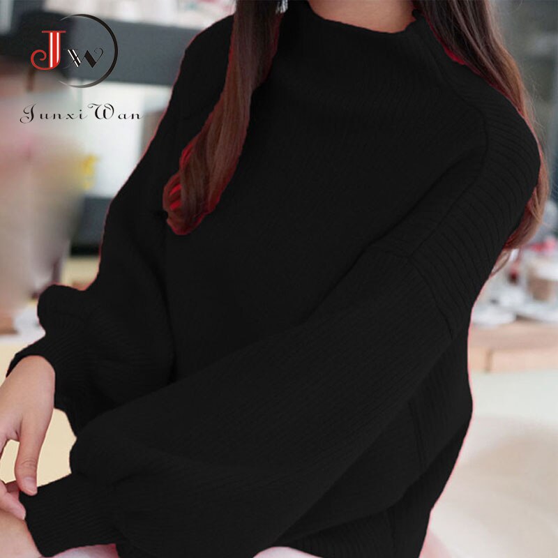 New Winter Women Sweater Fashion Turtleneck Lantern Sleeve Pullovers Loose Knitted Female Jumper Tops Pull Femme