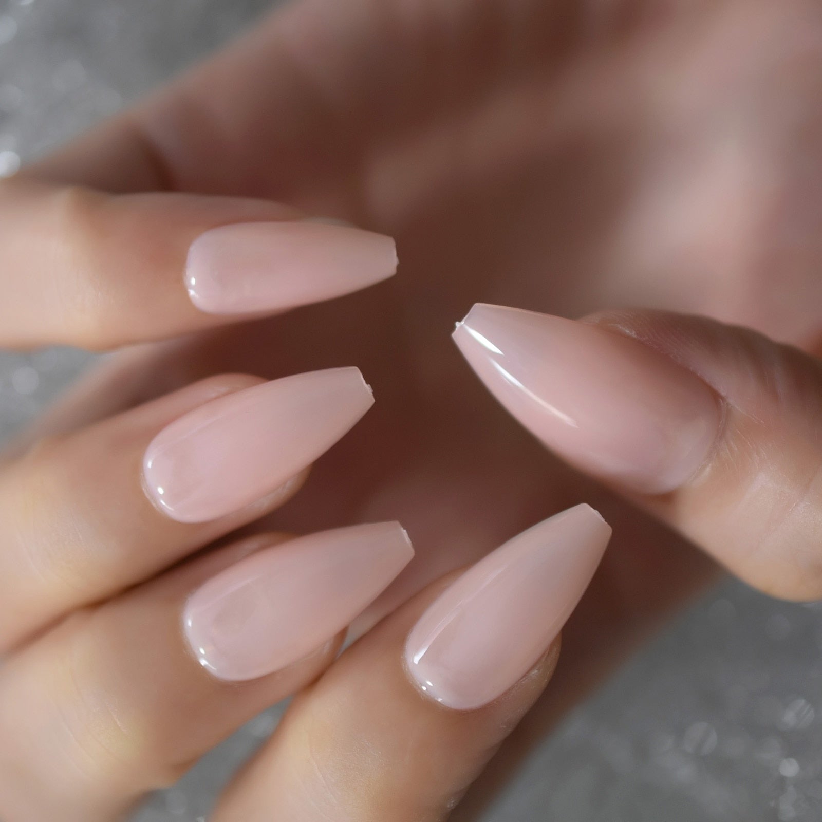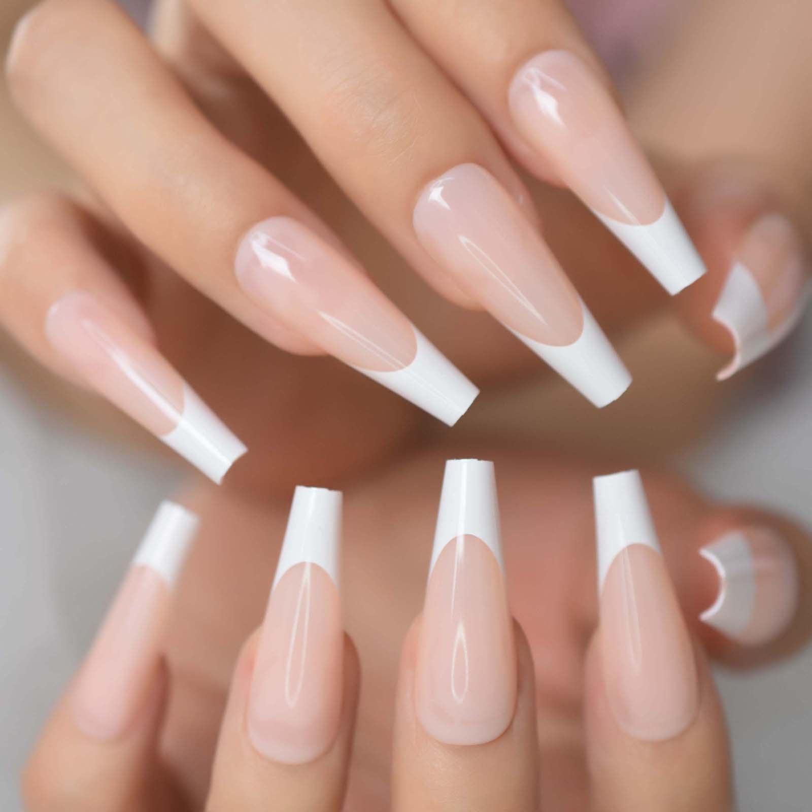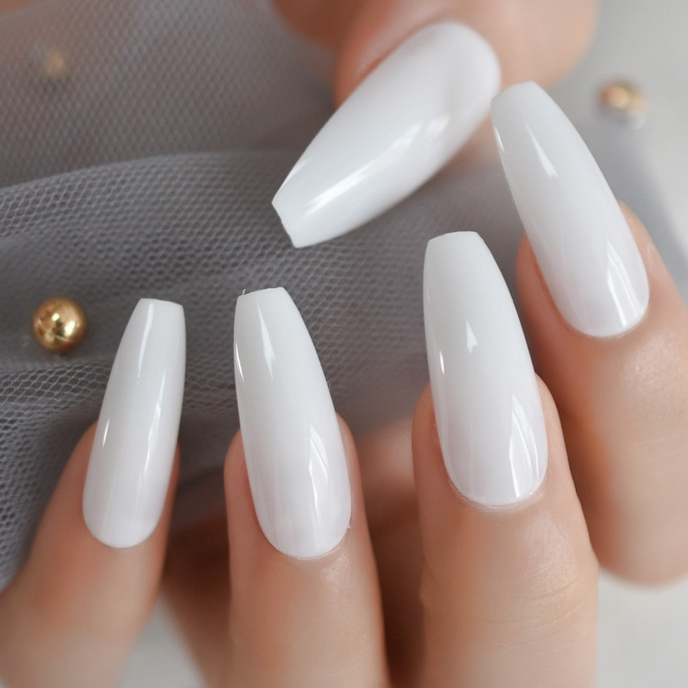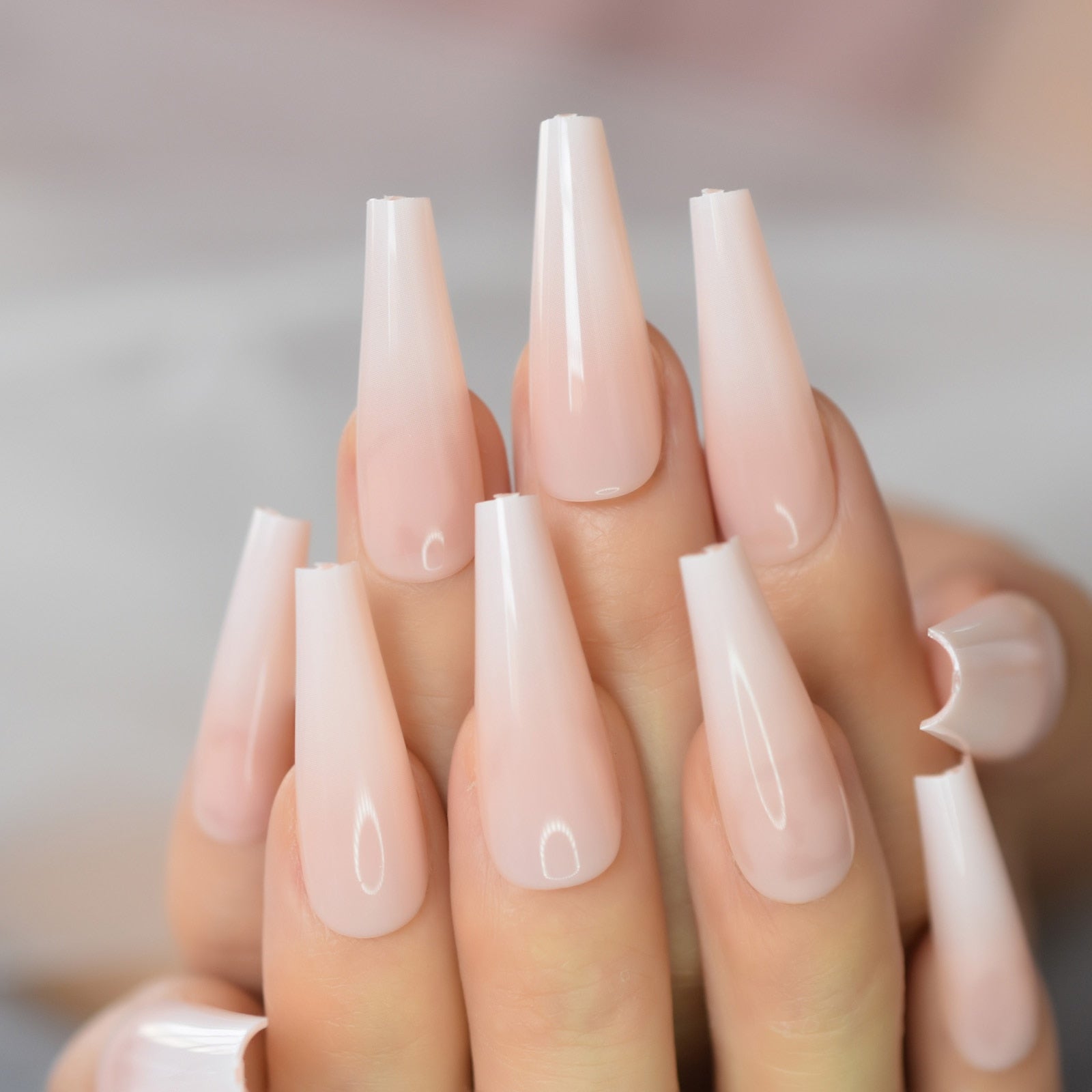 Nude Extra Long Fake Nails Coffin Full Cover Glossy False Nail Long Ballerina Nails with Glue Sticker-Nail Inspo