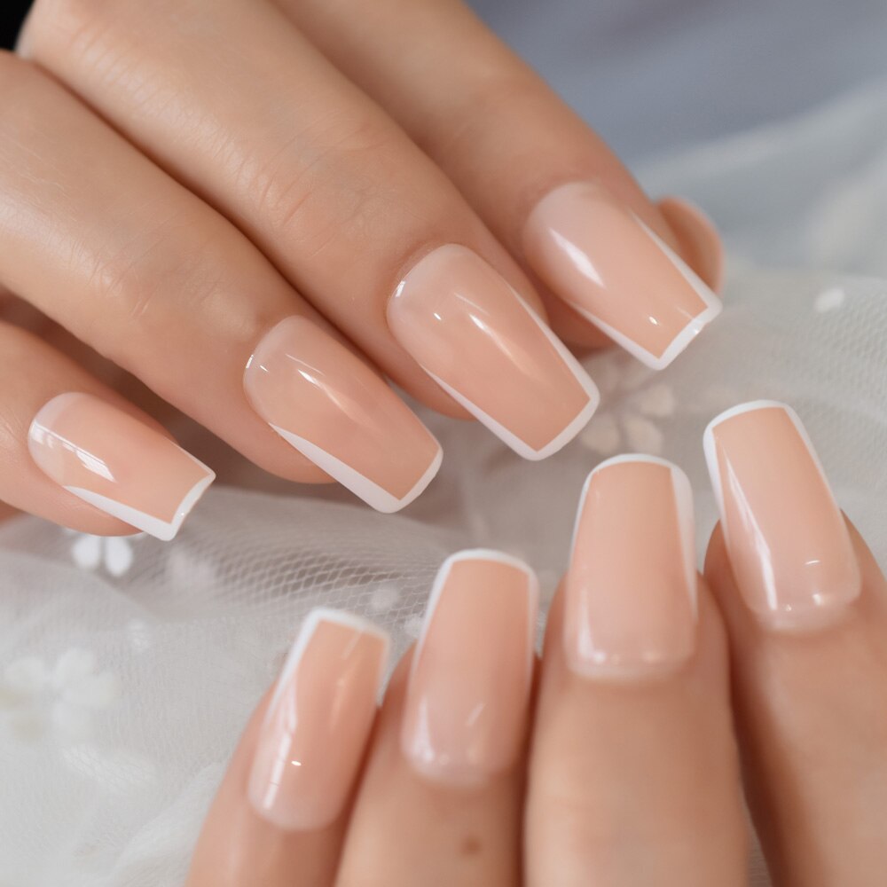 Nude Fake Nails Medium Square False Nail French Press On Nails U Pattern Supplies For Professionals Manicure Shop 24pcs Set-Nail Inspo