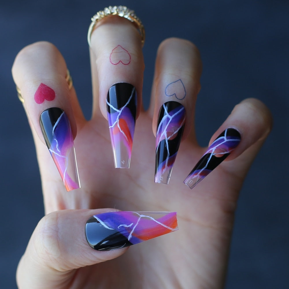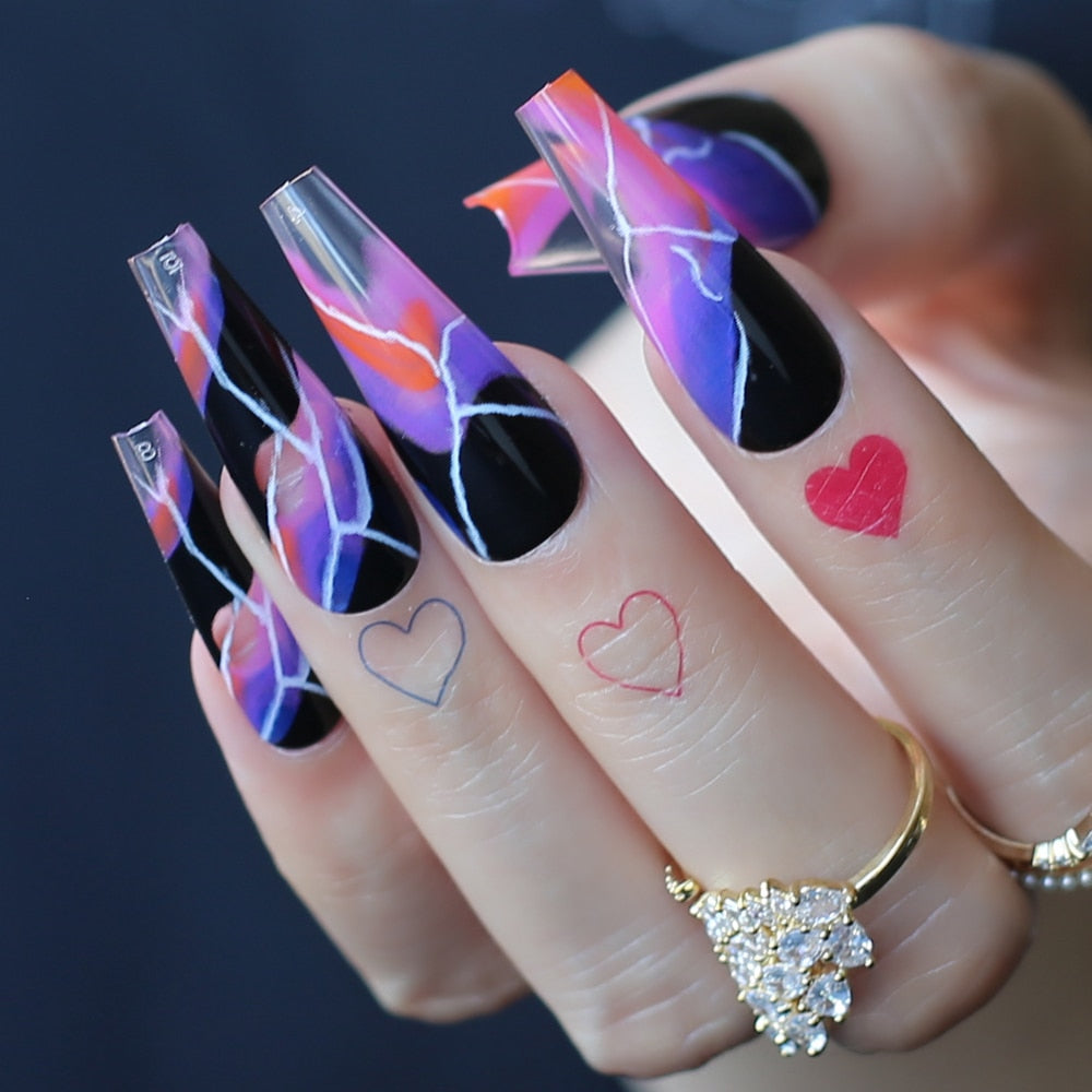 Ombre Black smudged clear artificial coffin fake nails Graffiti extra Gel fasle nails Orange halloween Art nails 24pcs-Nail Inspo