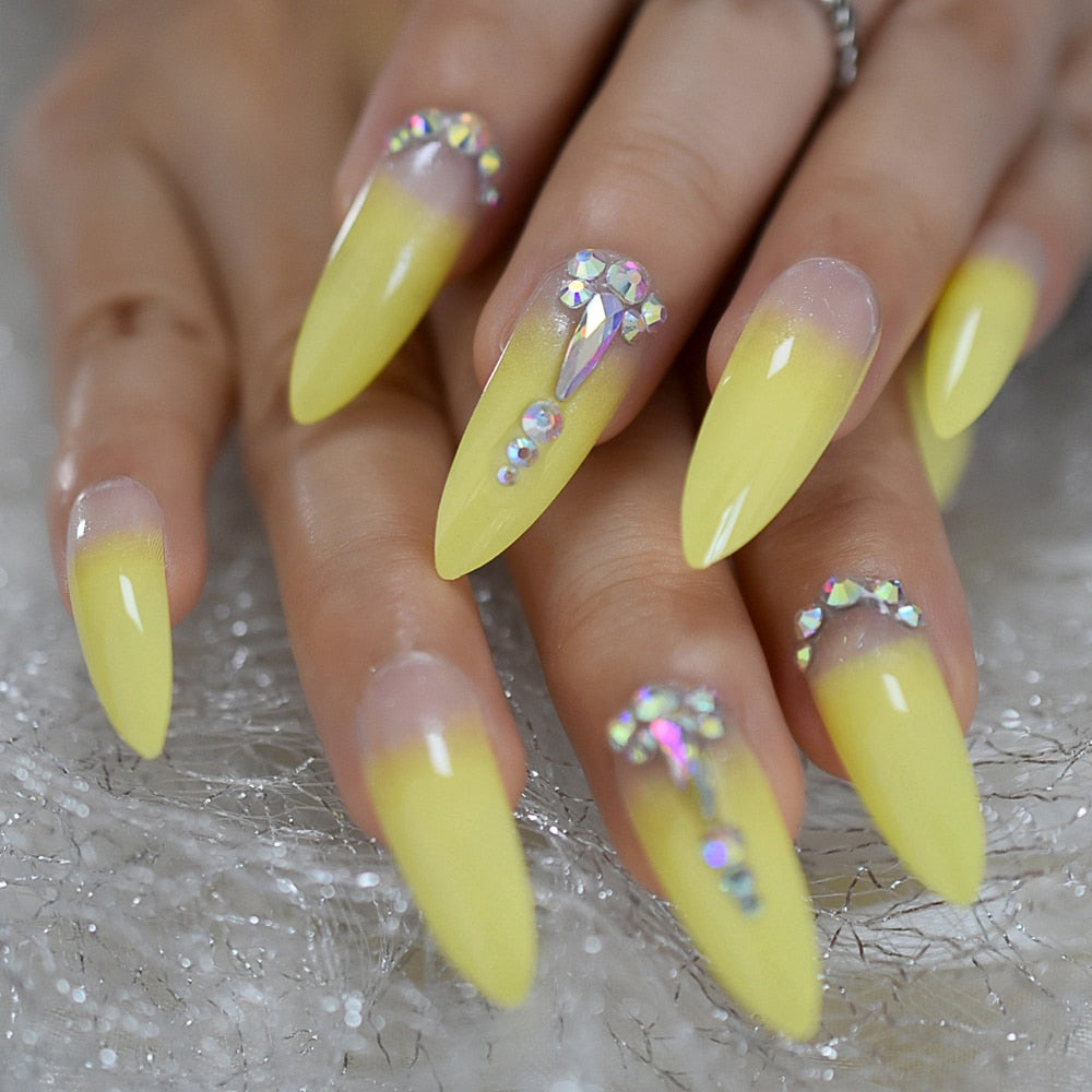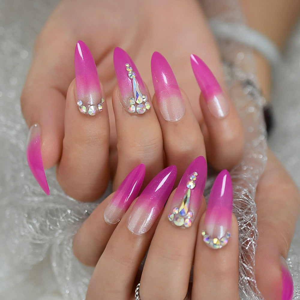 Ombre Jewelry Fake Nails Easy Designed Hand Painted Custom Press On Nails Extra Long Stiletto Designer Tips-Nail Inspo
