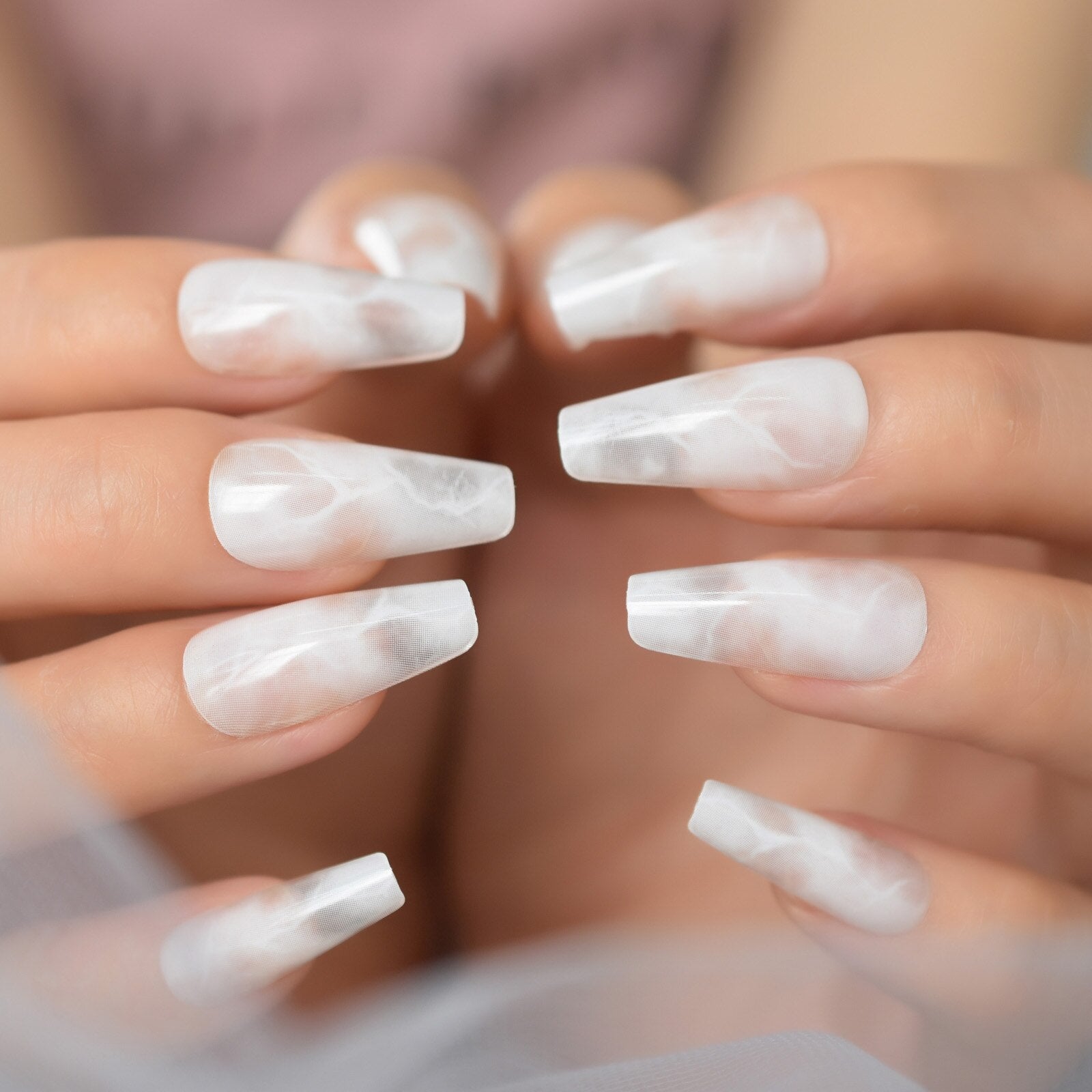 Orginal White Smoke Nails Design Full Cover Nails Coffin Extra Long Supplie For Professionals Gels Nails Art Fingernails Tip Set-Nail Inspo