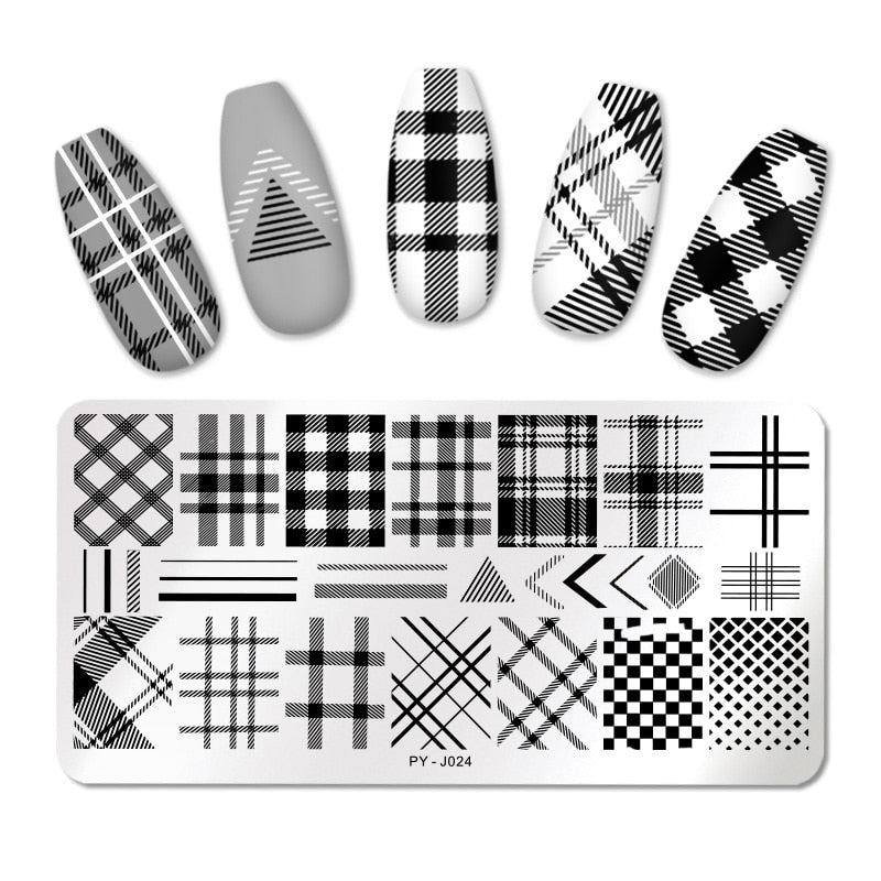 PICT YOU Check Pattern Nail Stamping Plates Stainless Steel Nail idea nail Art Image Plate Nail Stencil Tools-Nail Inspo