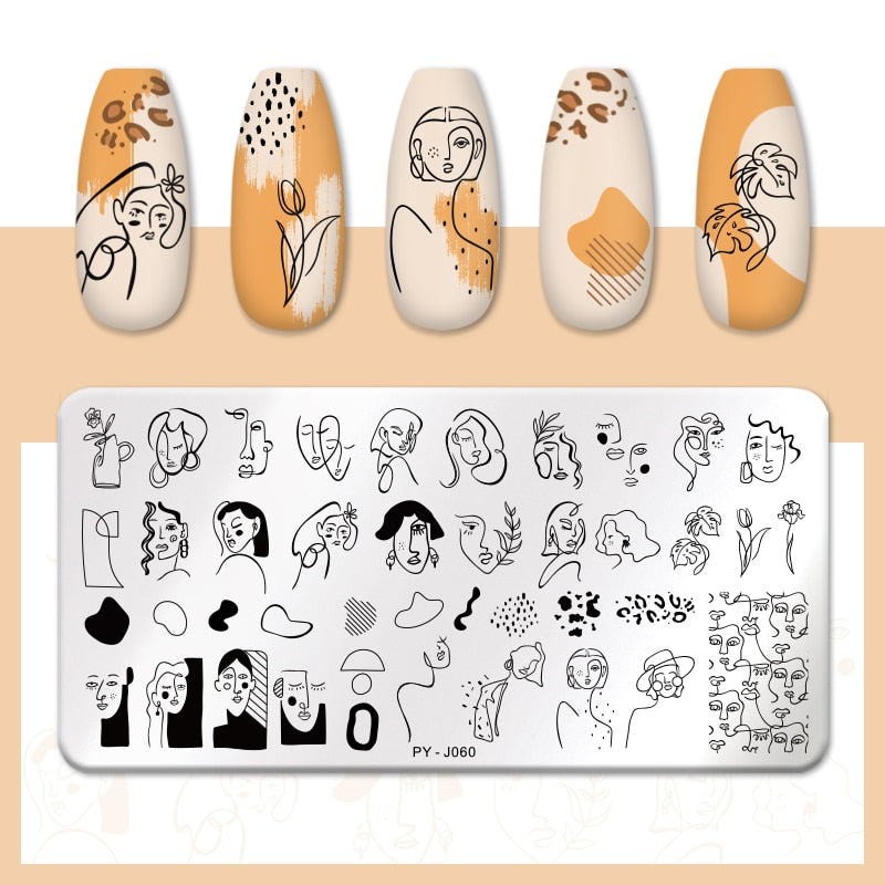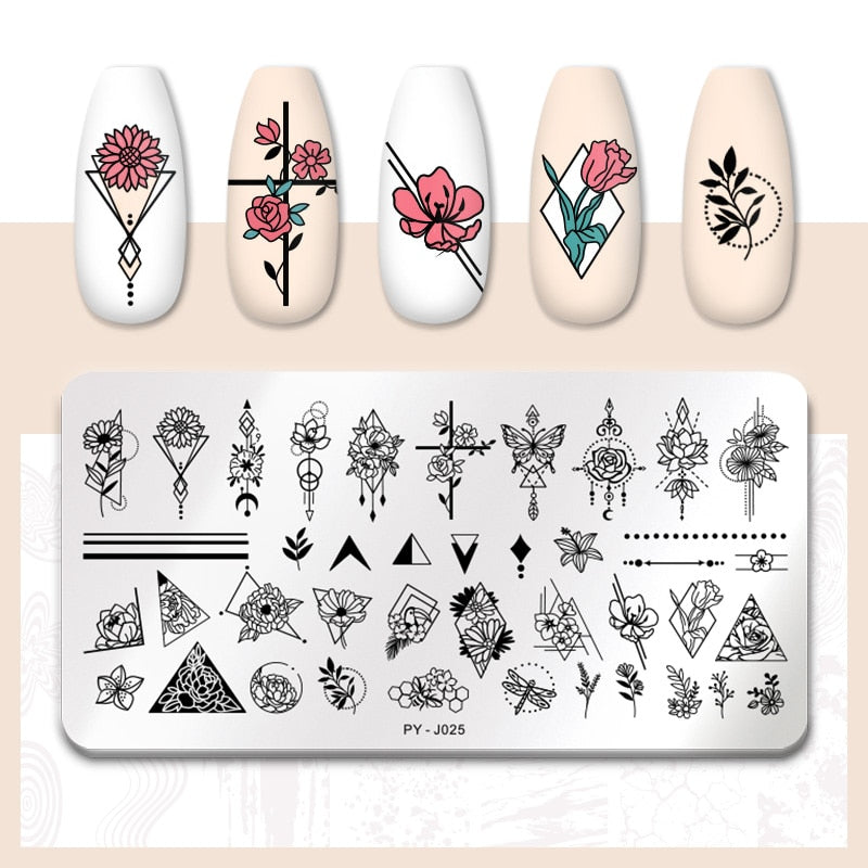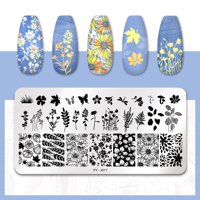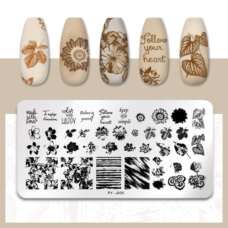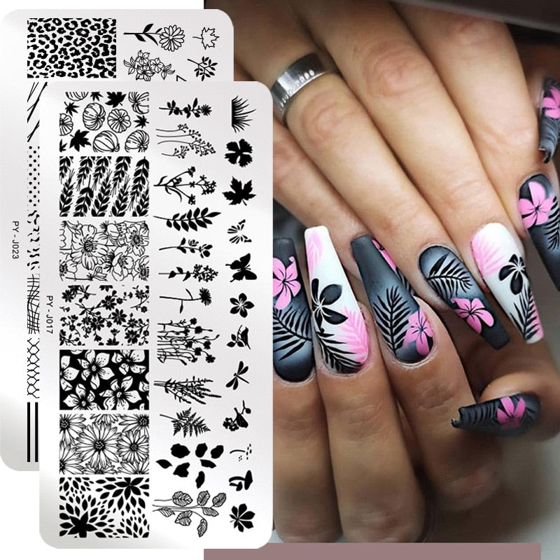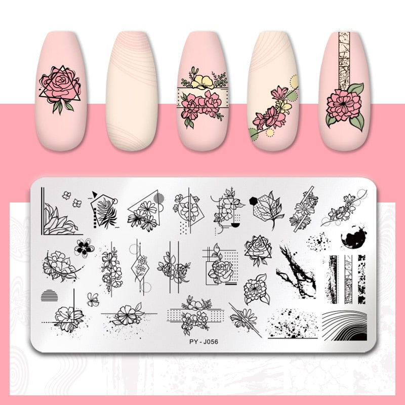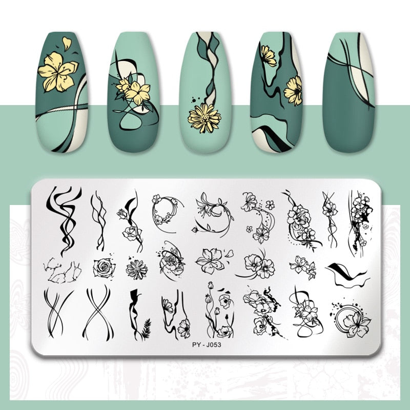PICT YOU Flower Nail Stamping Plates Line Pictures Nail Art Plate Stamp Template Marble Leaves Image Printing Plates Nail Tools-Nail Inspo