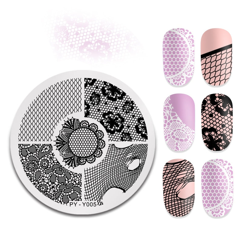 PICT YOU Nail Stamping Plates Round Lace Patterns Stainless Steel Grid Flowers Lace Nail Design Stamp Stencil Nail Image Plate-Nail Inspo