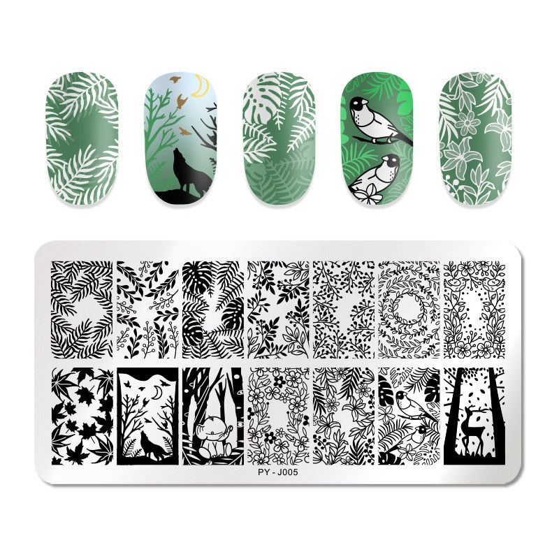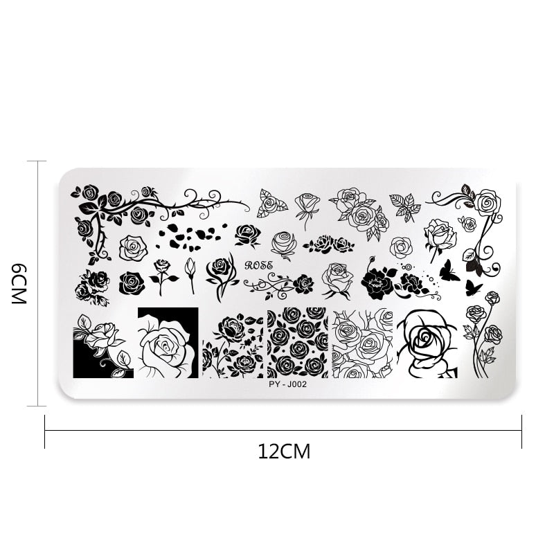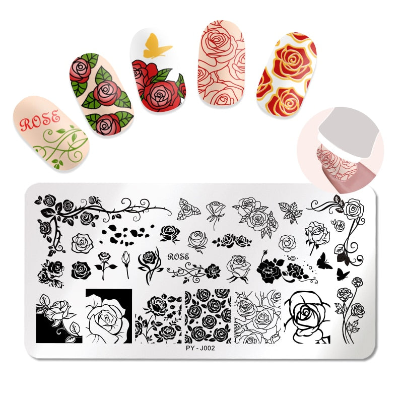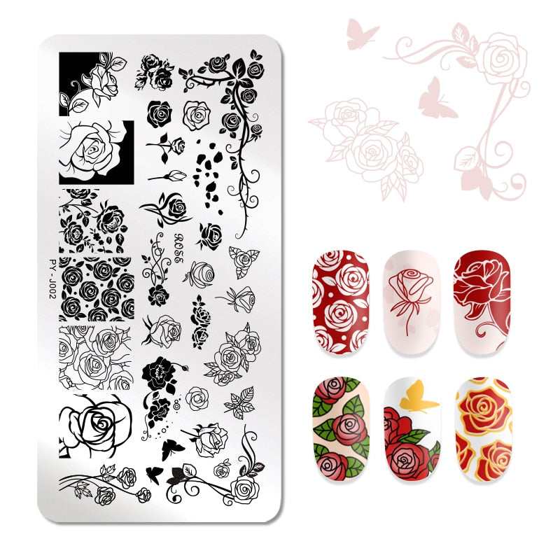 PICT YOU Rectangle Stamping Plates Rose Flower Series Image Design Stamp Stainless Steel Nail Art Design Template Tools J002-Nail Inspo