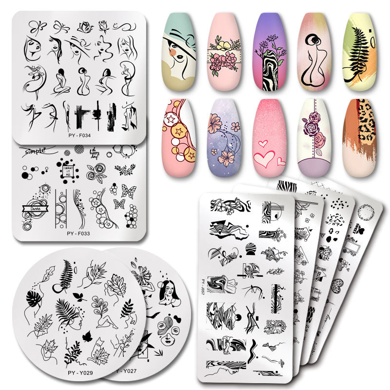 PICT YOU Rose Flower Nail Stamping Plates  Line Pictures Nail Art Plate Stamp Template Marble Leaves Image Printing Plates Tools-Nail Inspo