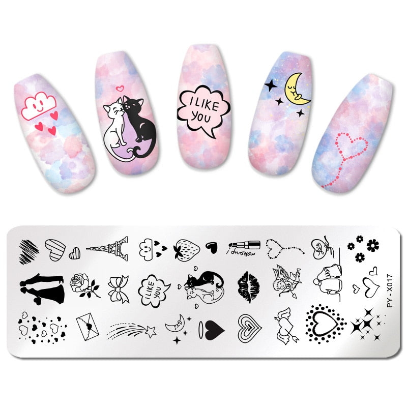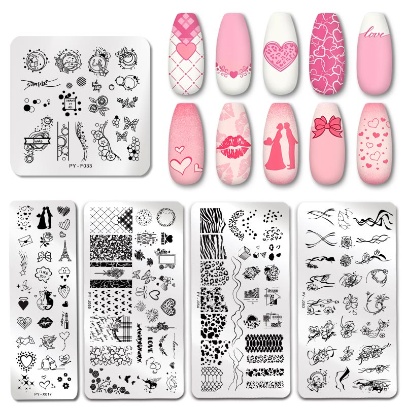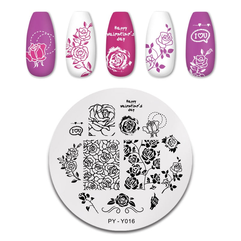 PICT YOU Valentine's Day Nail Stamping Plates Rose Flower Love Pattern Nail Art Plate Overprint Stamp Stencils Design Molds-Nail Inspo